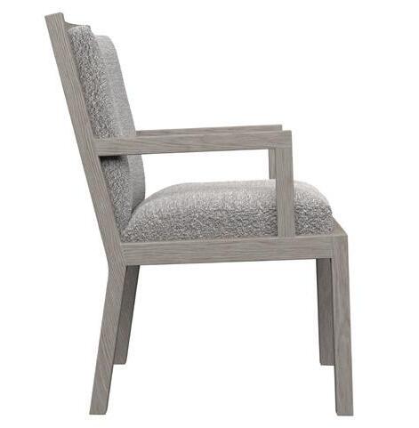 Upholstered chair with exposed wood legs in Gris finish. Also available in other fabrics excluding leathers, silks and pillow fabrics; order as 314X48G.