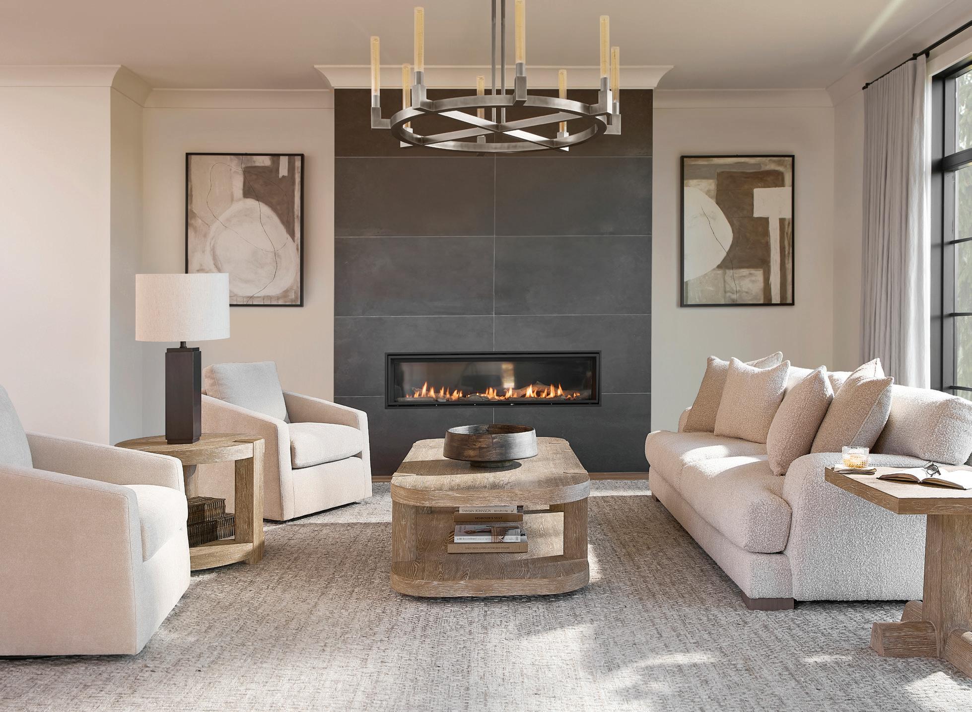 PAGES 2-3: 333022 Cocktail Table, 333121 Side Tables, 333123 Accent Table, 333911 Console Table, N2401O Aspen Ottomans, P7956Y Drew Sofa, N1623L Naomi Chairs.
