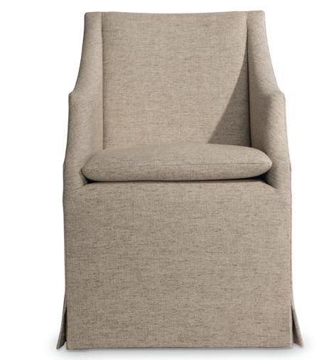Upholstered back, seat and arms with dressmaker skirt. Ball casters. Also available in other fabrics excluding leathers, silks and pillow fabrics; order as 333X46.