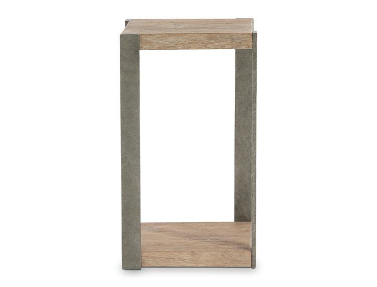White oak veneers and solids and aged metal frames, accents and hardware. Natural characteristics and imperfections in the wood are a normal part of the Aurum and Tadon finishes and add to the singularity of each piece.