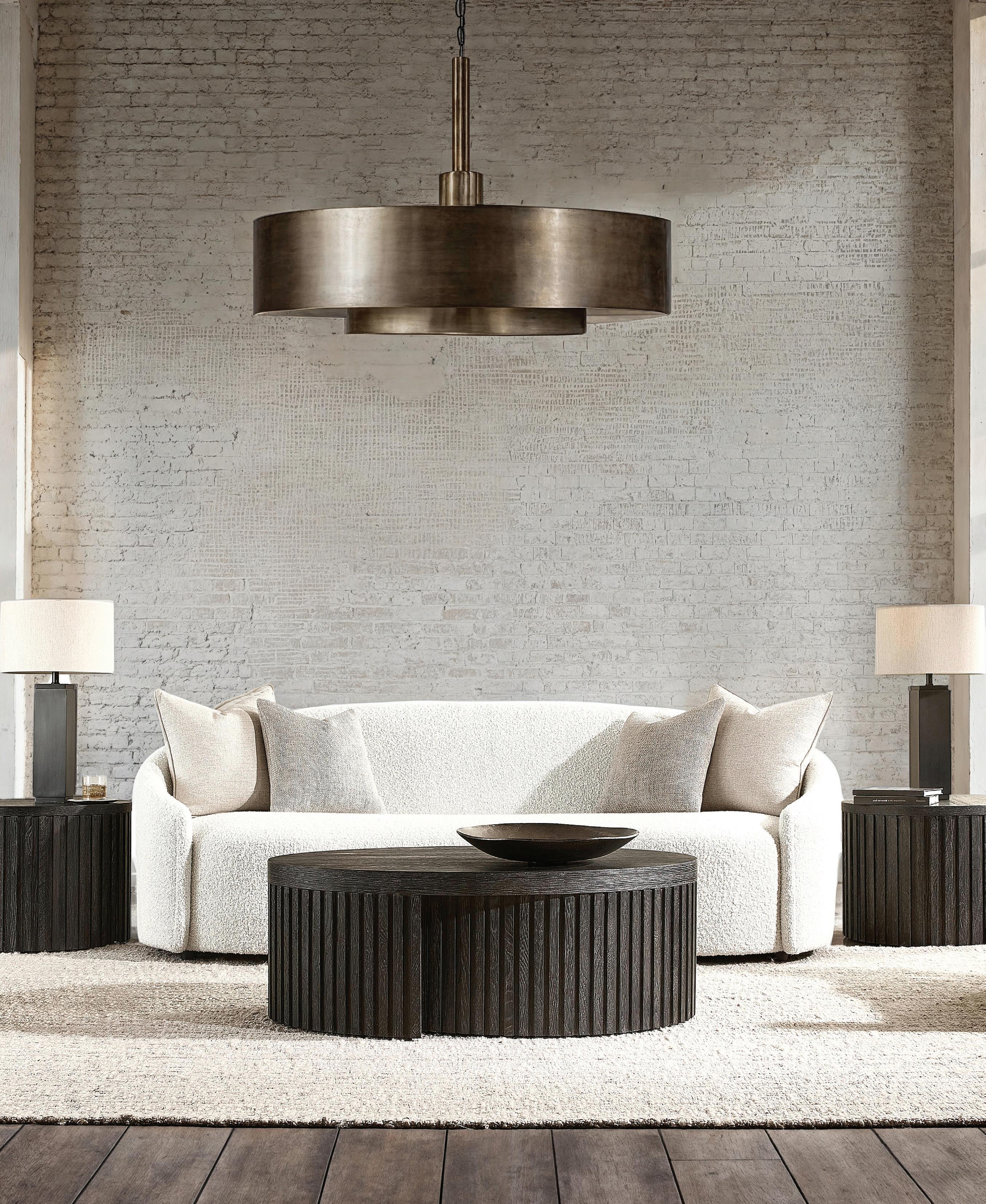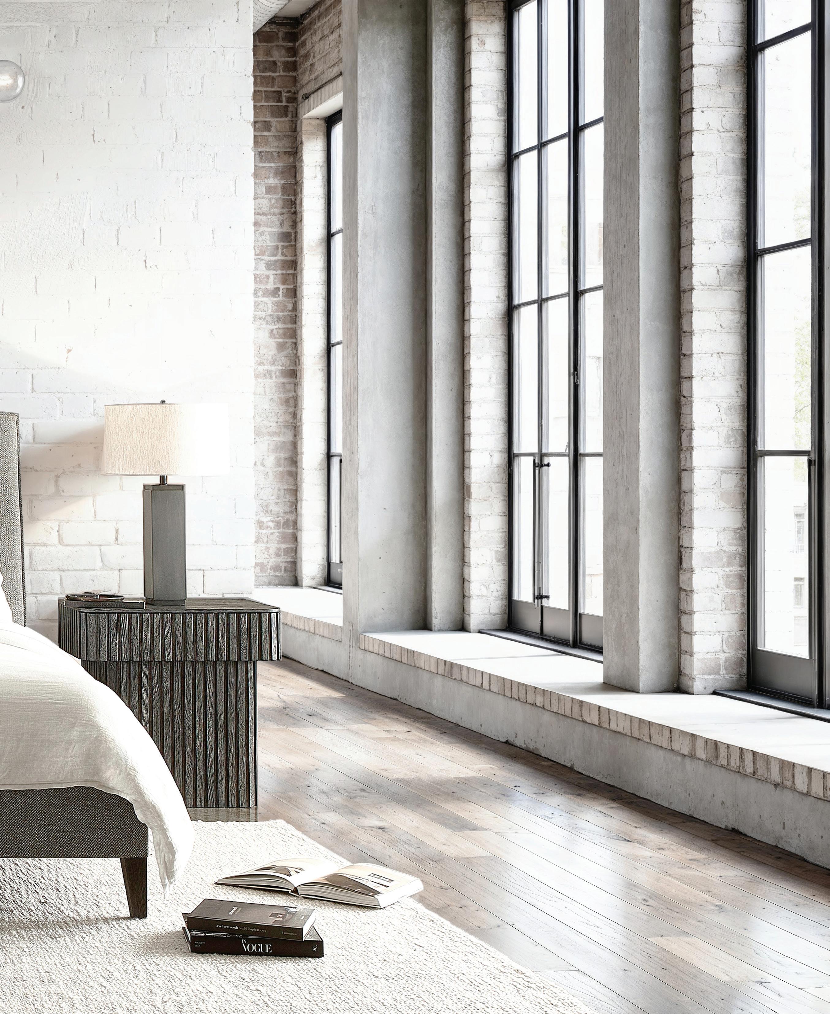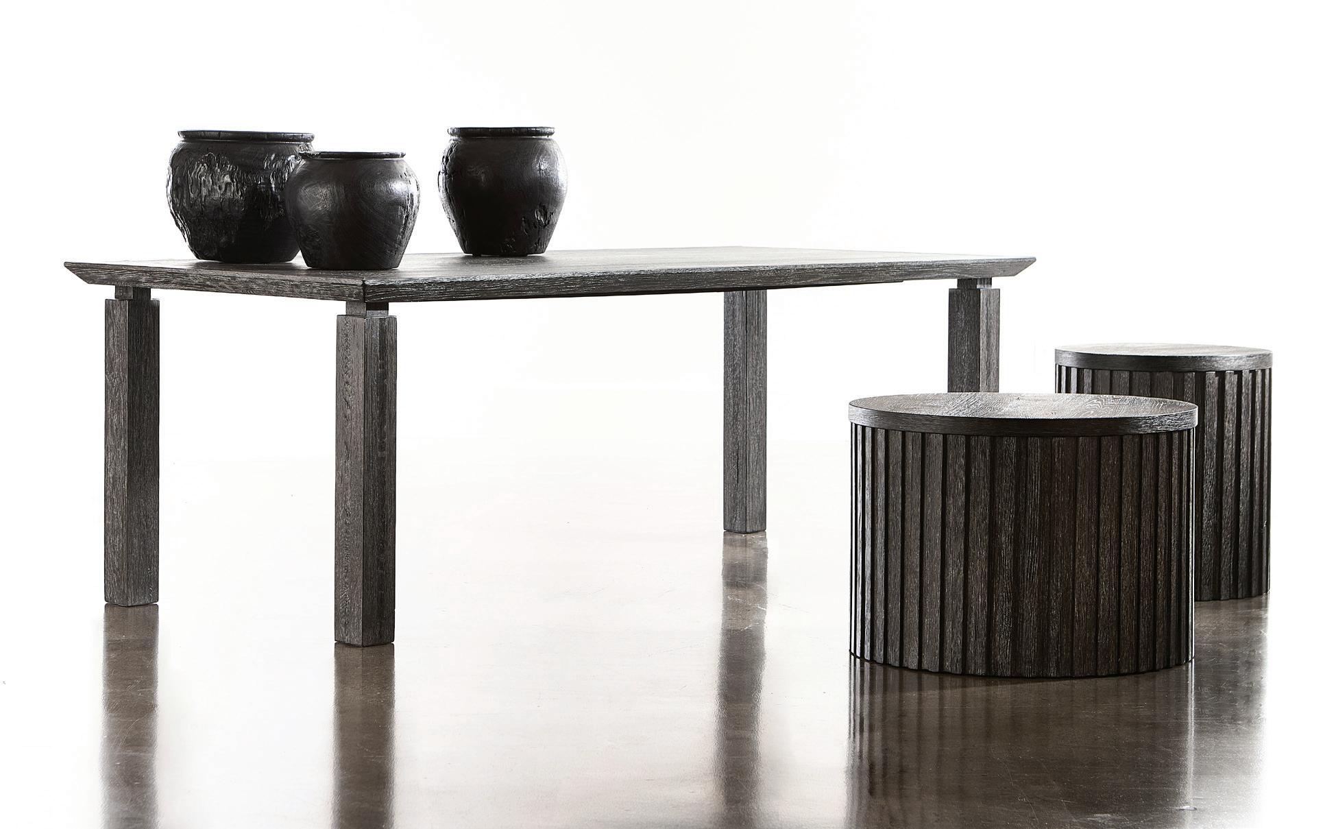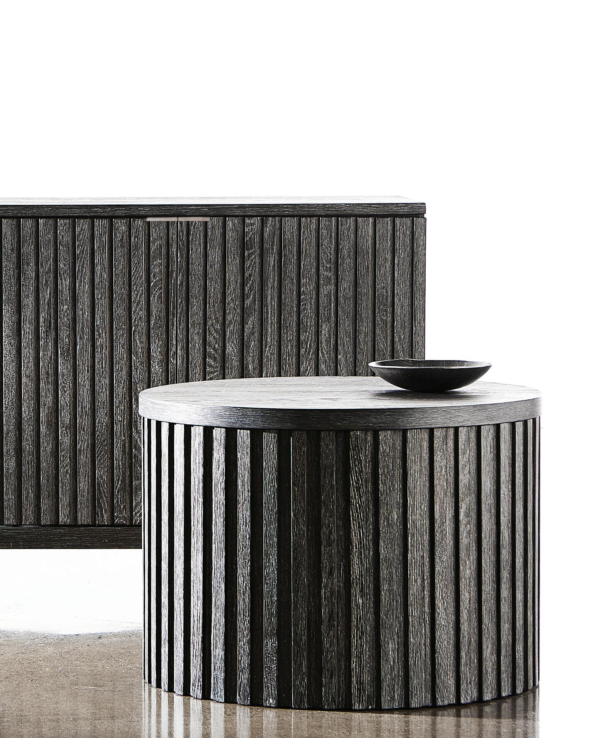 Defined by clean lines and architectural details, Menton combines a low key modernist perspective with a moody palette of earthy hues. Exaggerated linear reeding highlights simple, unadorned profiles. A sleek beveled tabletop floats above bold structural posts that anchor each corner. The collection bridges rustic and metropolitan, blending natural textures with warm minimalism and elevated design. The look is edgy and sophisticated, but casual and cool. A collection for the urban wanderer.