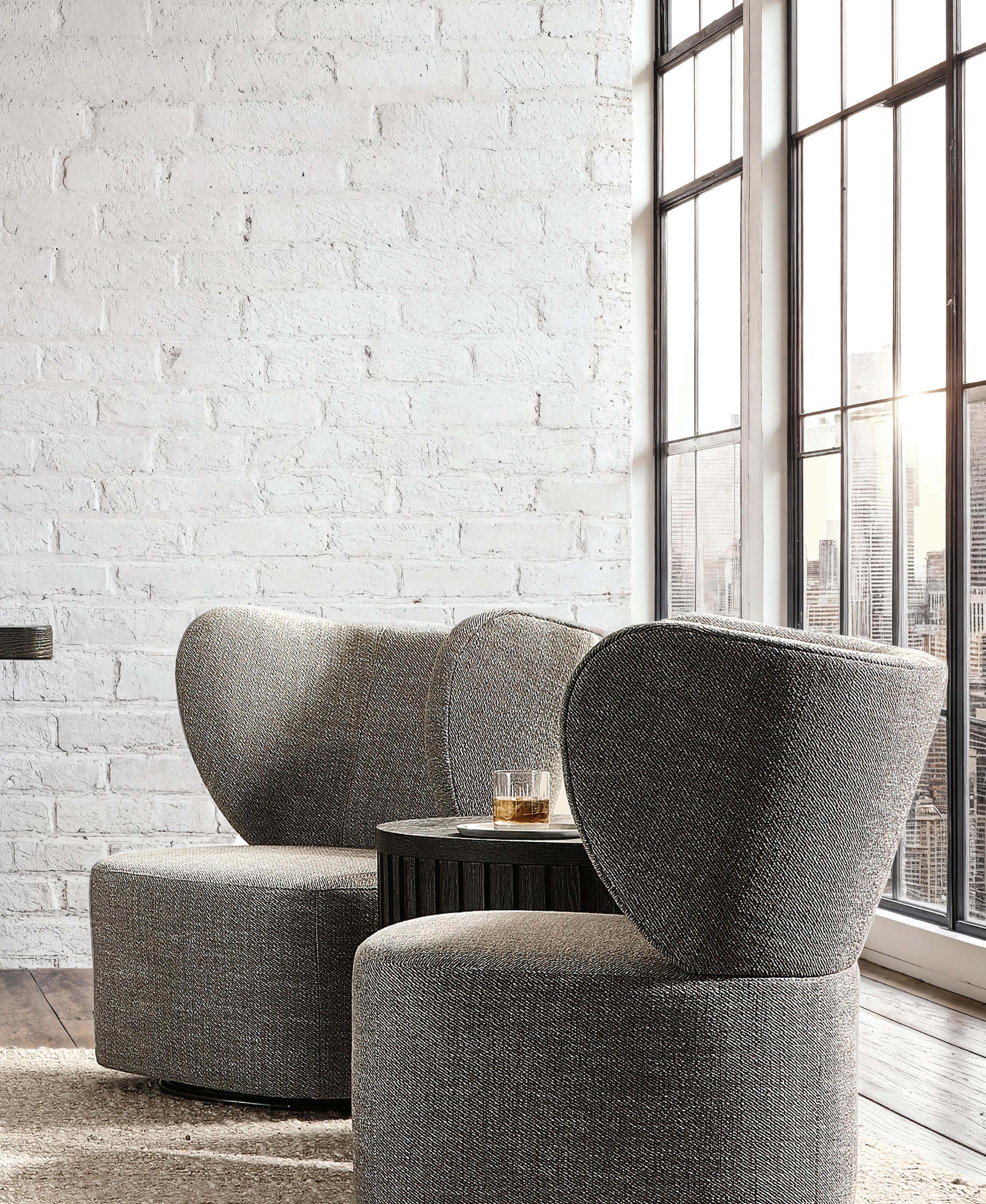 PAGES 12-13: 352911 Menton Console Table, 352121 Menton Side Table , B1714S Oliver Swivel Chairs.