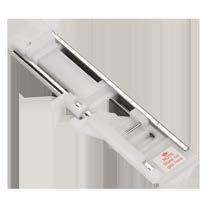 Měřítko slouží jako nástroj pro měření lemů, švů nebo pro značení látek. Měřítko můžete použít i pro dodatečné nastavení vodítka švu. Přípravek pro zajištění prádlového stehu se vyrábí z měkkého plastu, který je šetrný k látce i niti.
