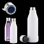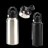 Set de libreta con tapa dura en RPET de 21 cm x 14.5 cm de 80 hojas rayadas. Botilito doble pared vacuum en acero inoxidable, con aislamiento térmico que mantiene la bebida fría o caliente hasta 6h, aprox (puede variar dependiendo condiciones climáticas) Bolígrafo metálico con barril en tela y clip metálico, tipo twist. Empaque caja individual.