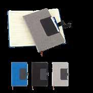 Libreta multifuncional en poliéster reciclado RPET. Con tecnología RFID (Radio Frequency Identification) la cual permite bloquear las señales electromagnéticas. 64 hojas de papel con rayas. Cierre en bambú con imán.