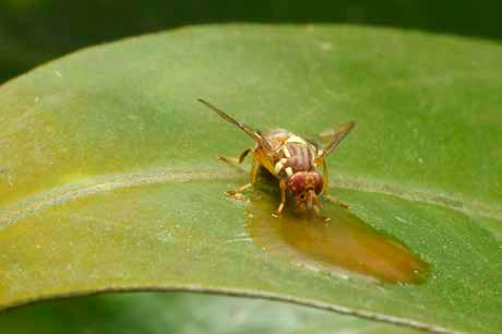 Swarms of adults feed on the growth flushes of y oung plants resulting in wilting and dieback of shoots, and significant growth impairment of young plants (Figure 2). Invasion of flowering plants causes reduced fruit-set and epidermal scarring of fruit rendering it largely unmarketable.