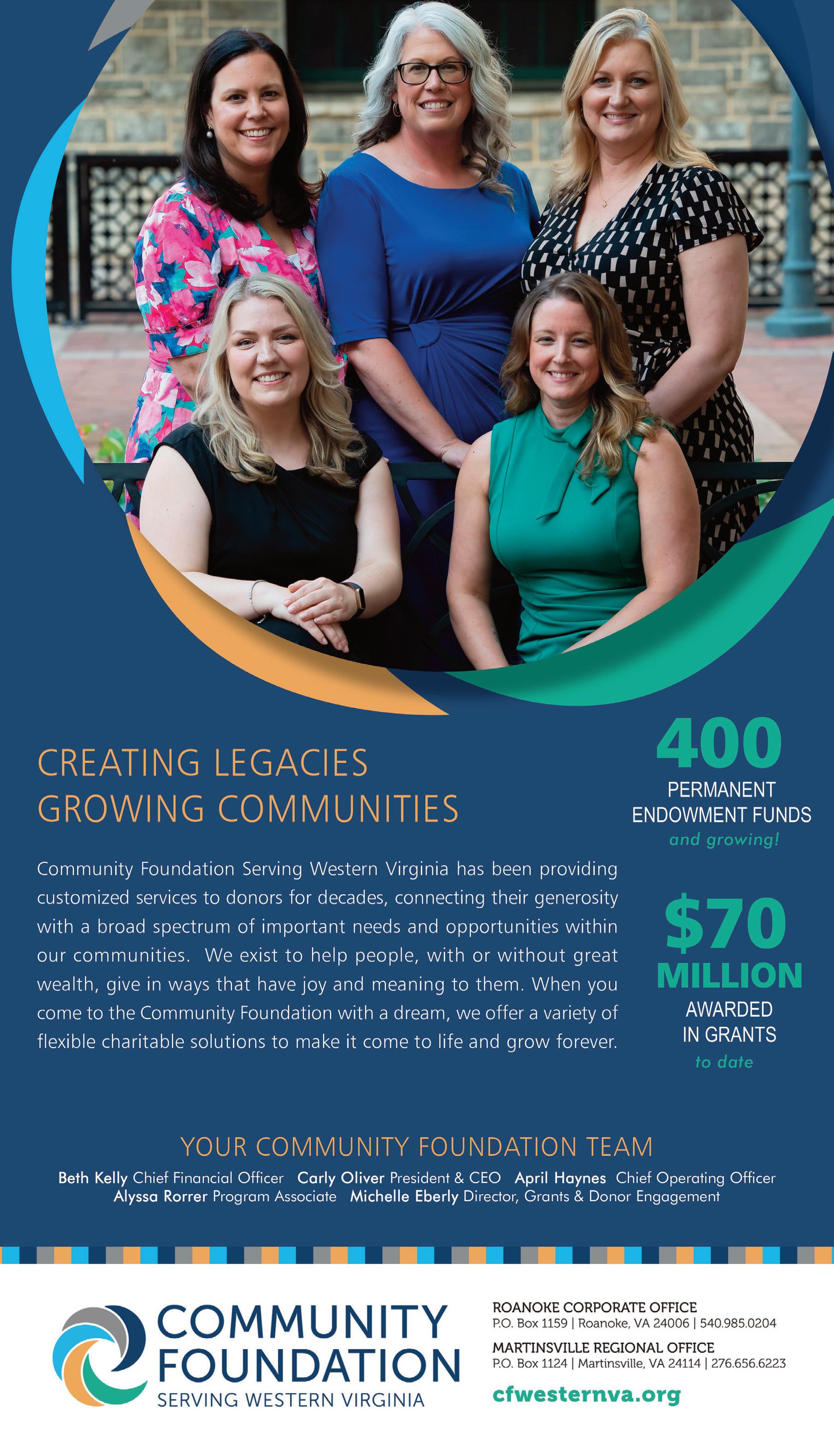 The Roanokebased Community Foundation Serving Western Virginia announced two recent additions to the team. Chrissy Hannabass, with two decades of nonprofit experience has been hired as