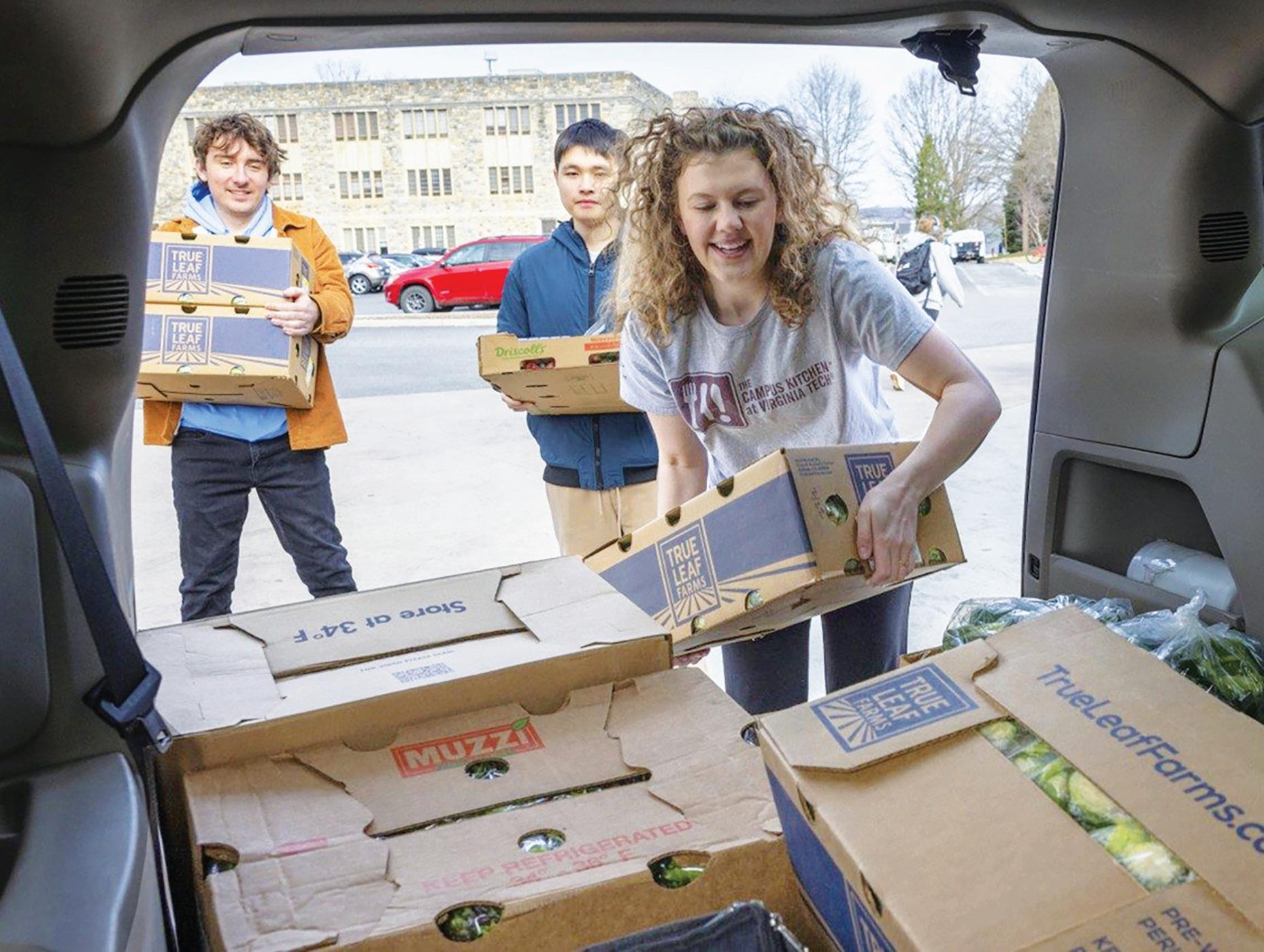 Campus Kitchen—redistributed leftovers from restaurants to needy recipients in the New River Valley. The organization’s “VT Engage” program relies on student volunteers to “divert food from dining centers to food pantries across the New River Valley. Three times a week, staff and volunteers load a cargo van with quality, unserved food and deliver it to community food access organizations.” To date, Campus Kitchen has diverted over 263,000 pounds of unserved food to Virginians in need, with 11,000 pounds diverted in the first 12 weeks of the fall 2025 semester alone.
