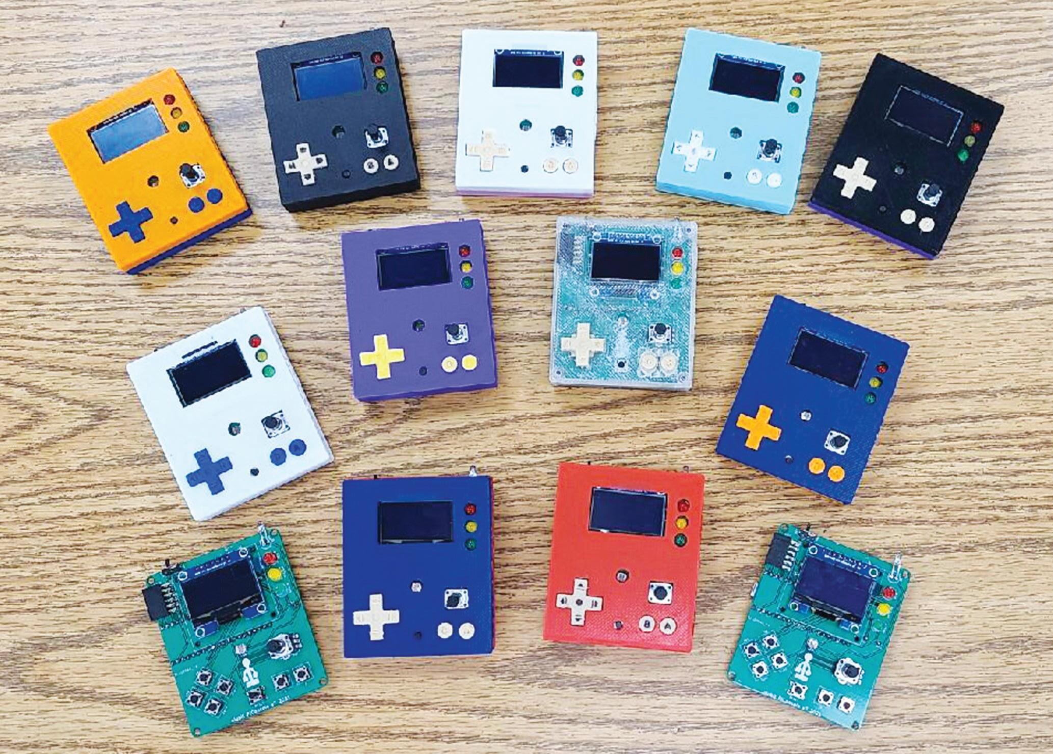 County. This year, he had students design their own keyboards by 3-D printing the cases and plates and hand wiring them. Much to his surprise, the students enjoyed making the keyboards even more than they did mobile apps. His students also recently made Game Boy devices from scratch, which were used to code on.