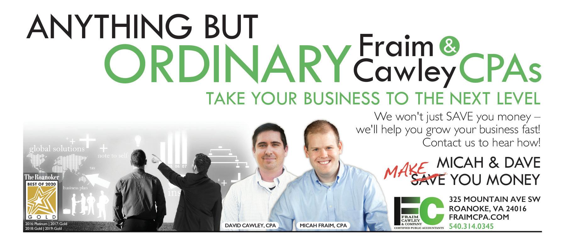 Micah Fraim is a topreferred Certified Public Accountant and business finance strategist who is well-connected in the regional business community and nationally recognized. Publisher of The Little Big Small Business Book, he also publishes a blog at www.fraim.cpa/blog and is frequently interviewed as a business financial expert in national media channels. [ micahfraim@fraimcpa.com ]