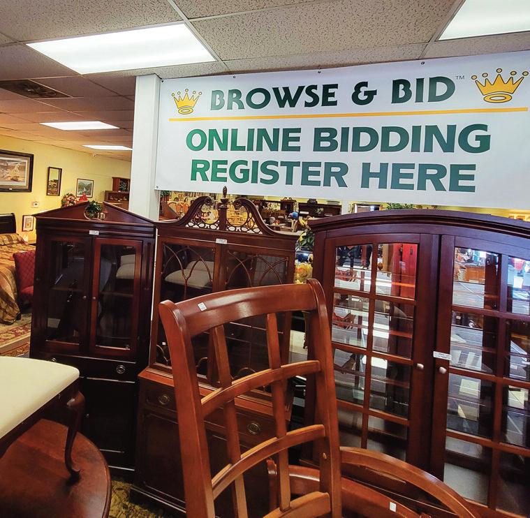 “We’re the only auction house in Virginia without an auctioneer,” says Balentine, owner and operator of the Crowning Touch business, located on Williamson Road in Roanoke. “There are lots of online auctions, for sure. But we have our own hybridized ‘browse-and-bid’ system” that lets bidders manage their own transactions. “Browseand bid,” she reitterrates, “is our own brand.”