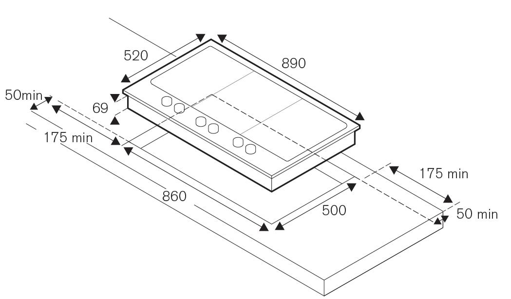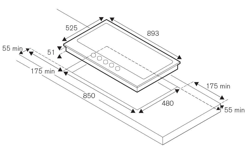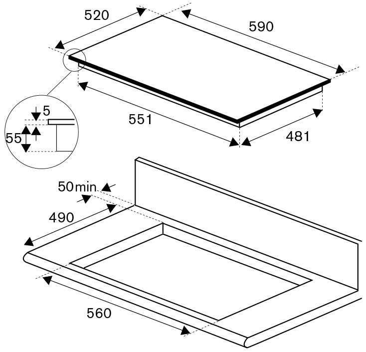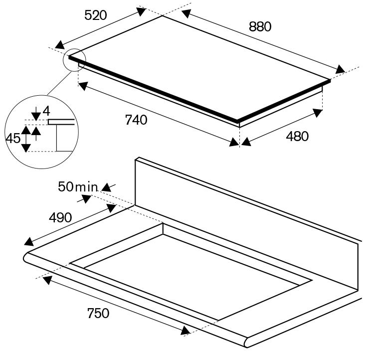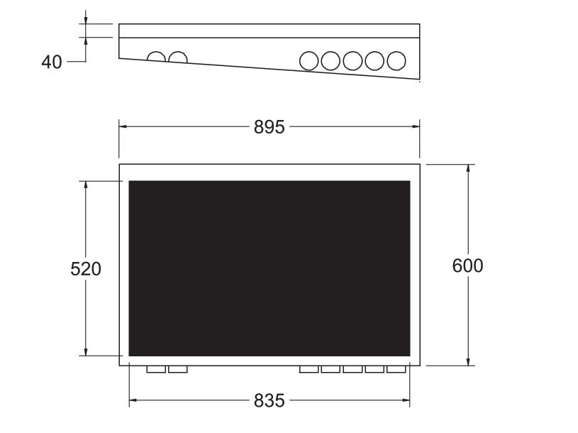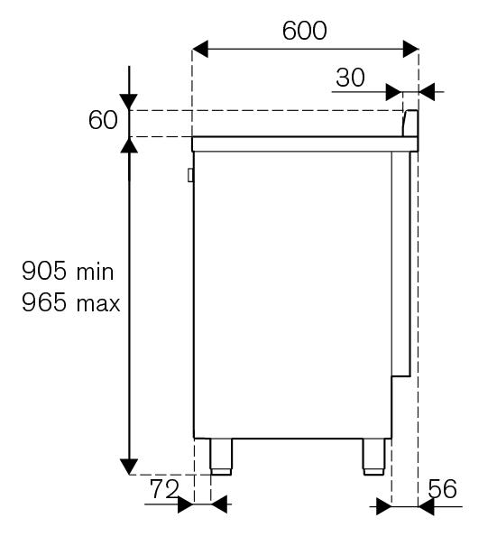 900mm electric oven (Decorative rail overhangs width 33mm each side, refer to image above. Flat-end caps available.)