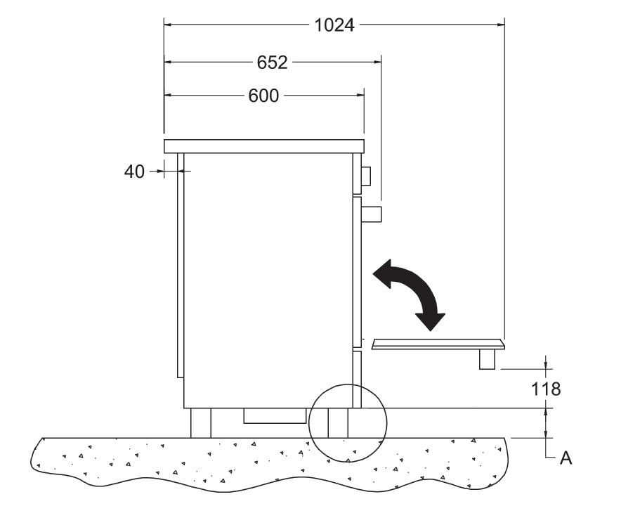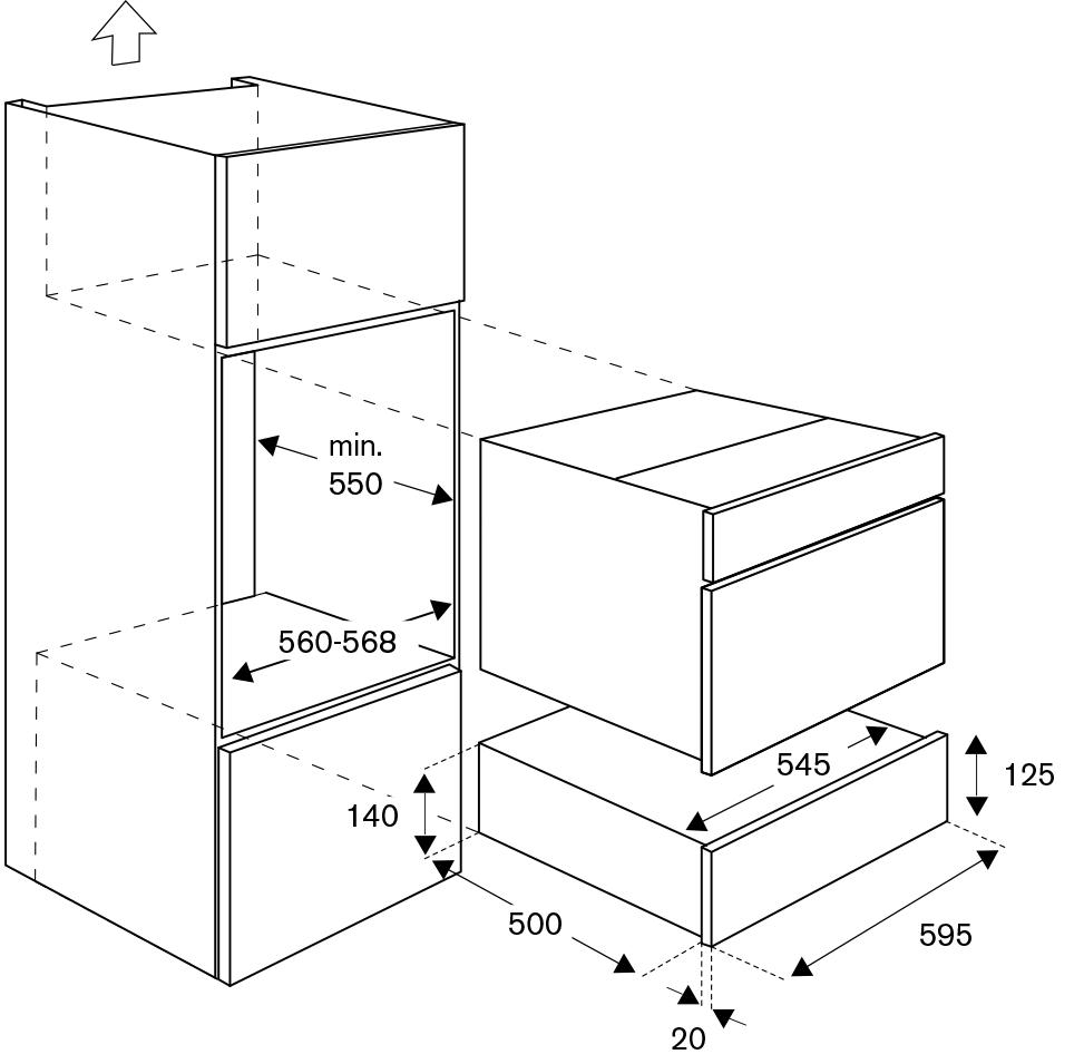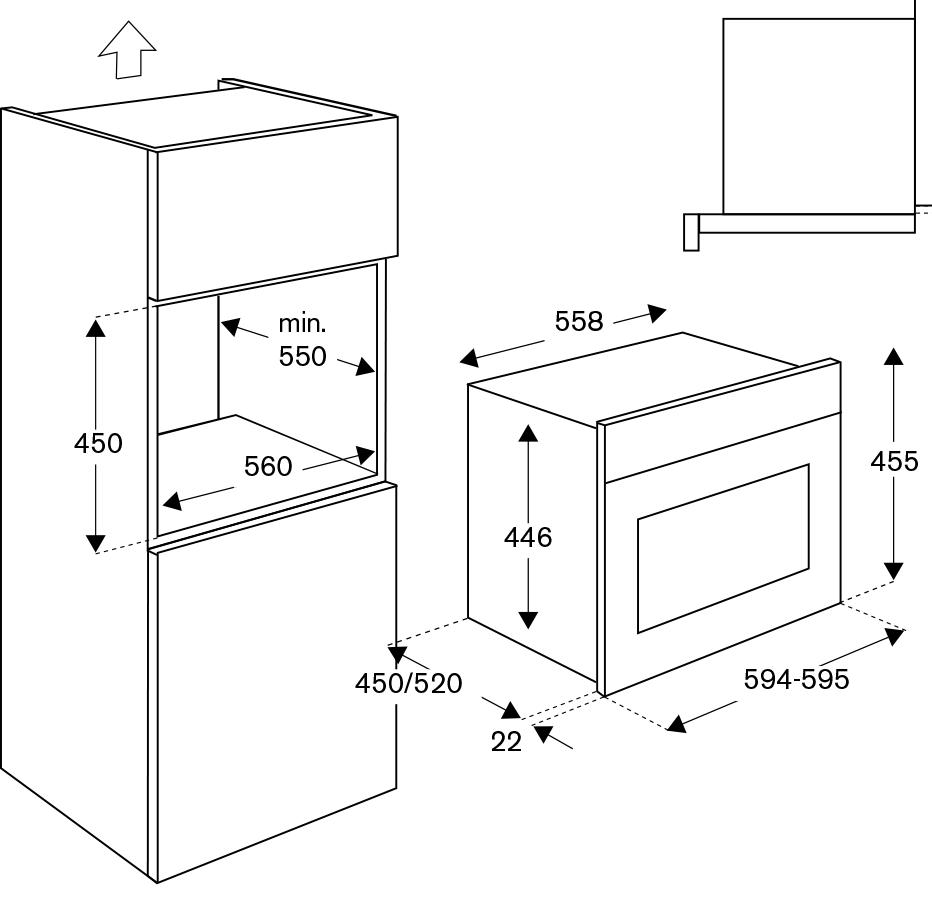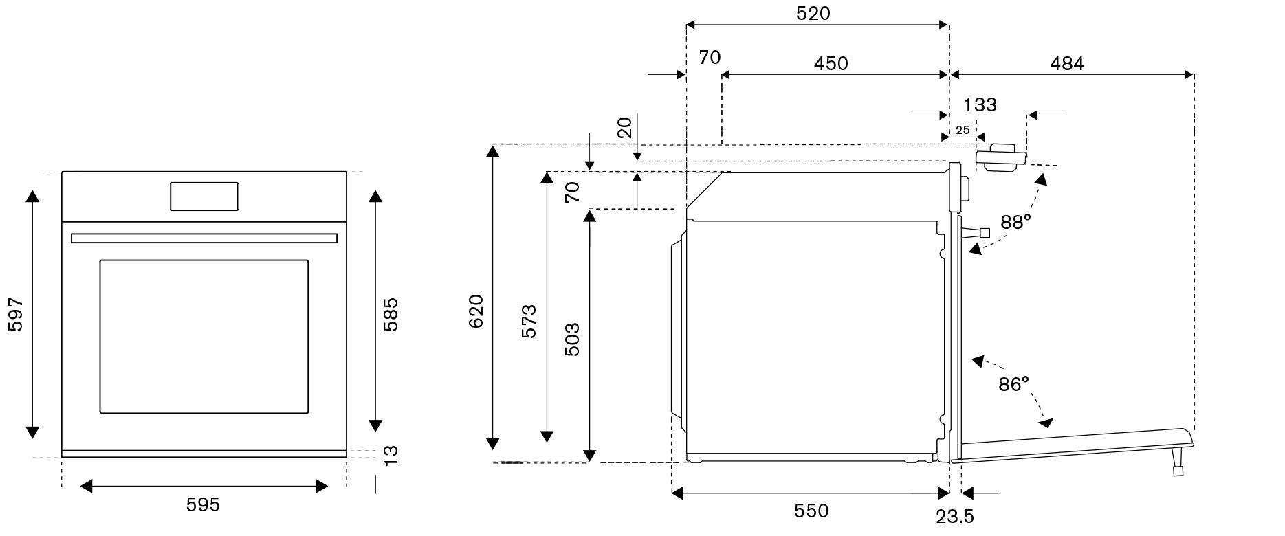 Auxiliary conventional oven 55 litre/Third oven 25 litre grill function