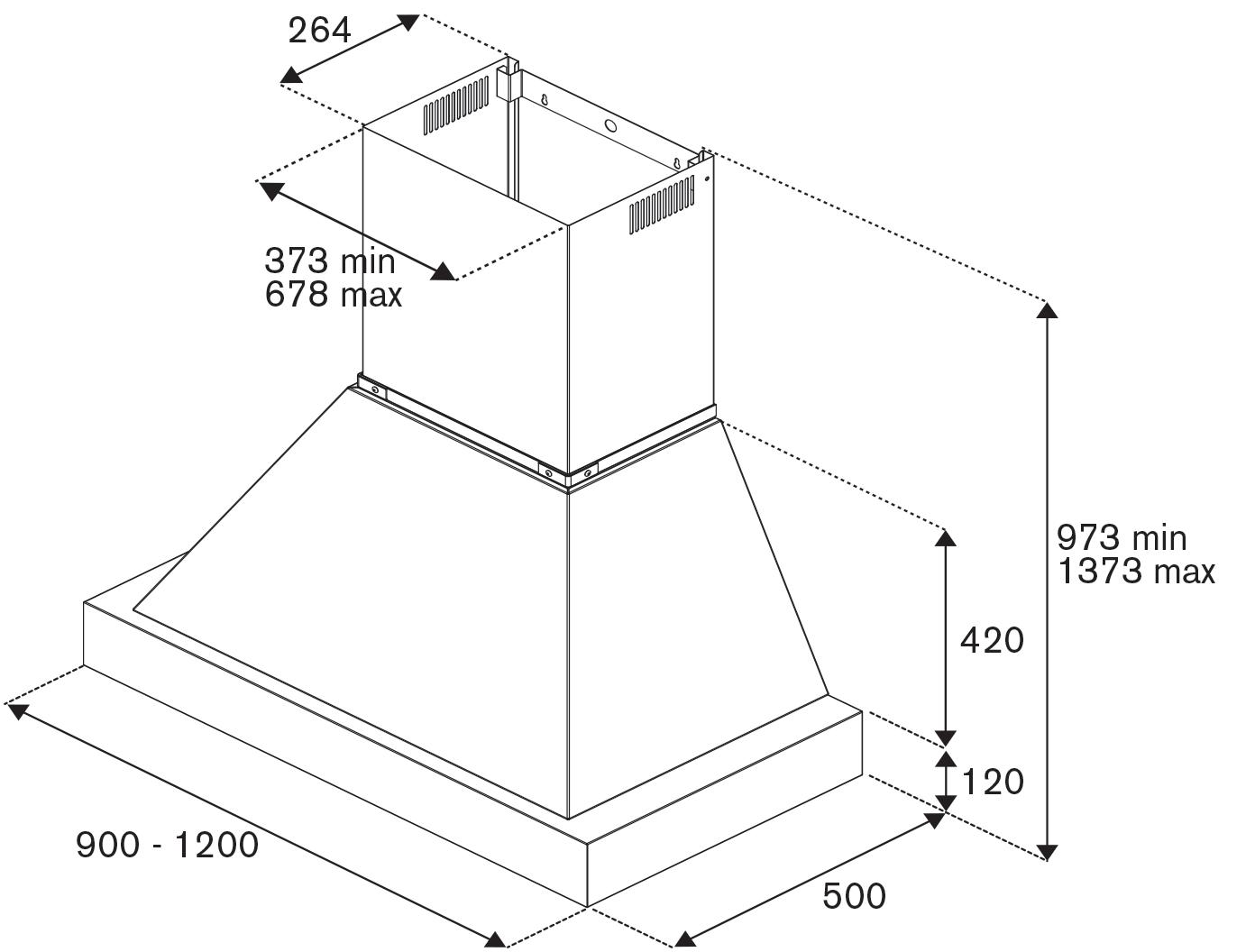 Hood chimney height is adjustable to 1373mm 5 year warranty (from date of installation)