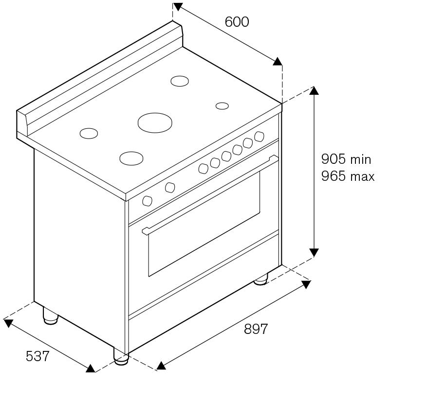 900mm multi-function election oven (Decorative rail overhangs width 33mm each side, refer to image above. Flat-end caps available.)