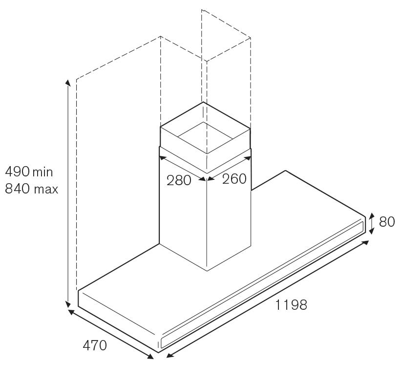 900mm, 1000mm & 1200mm Wall Mount Hood