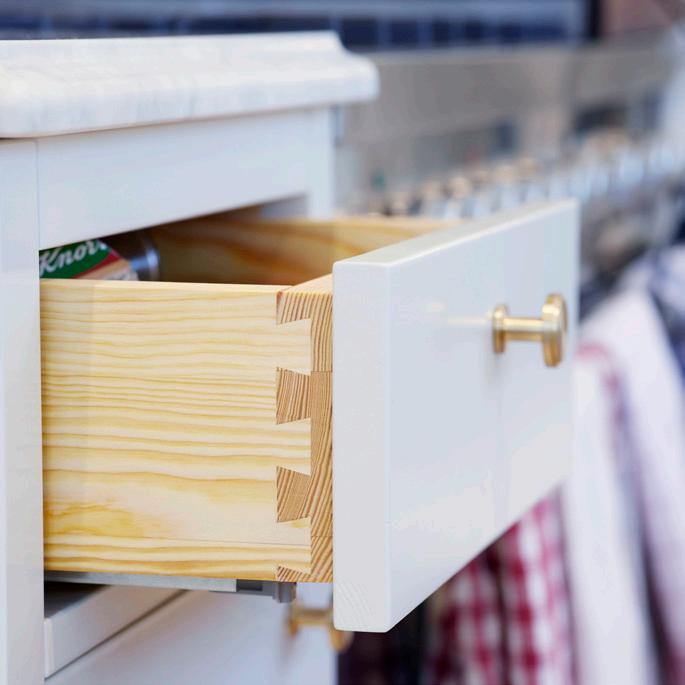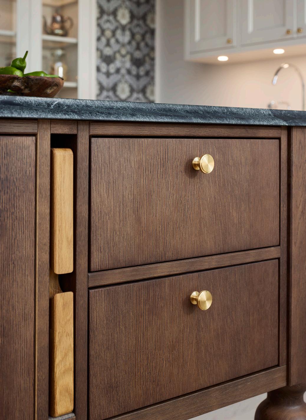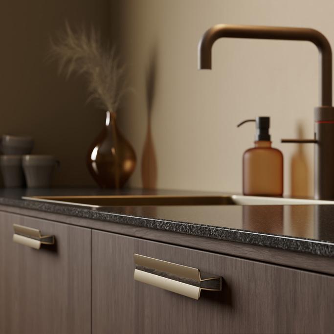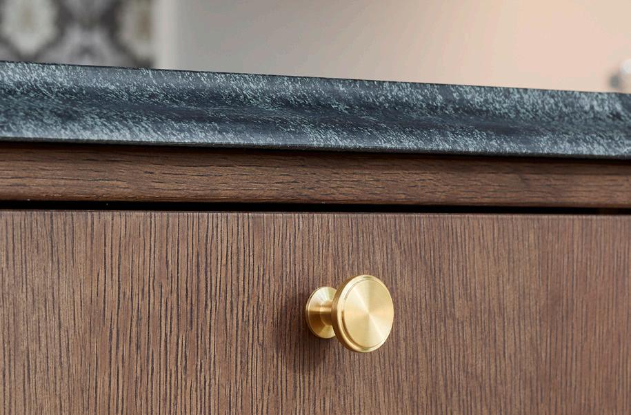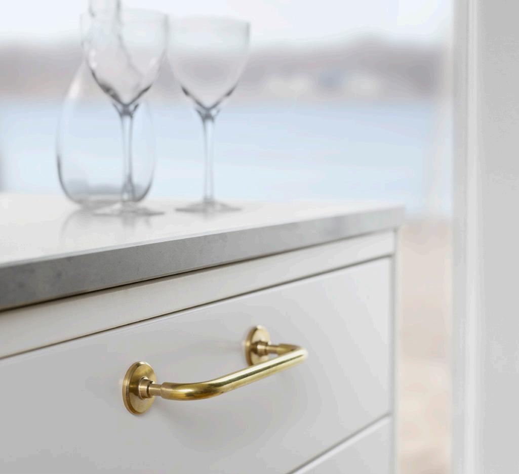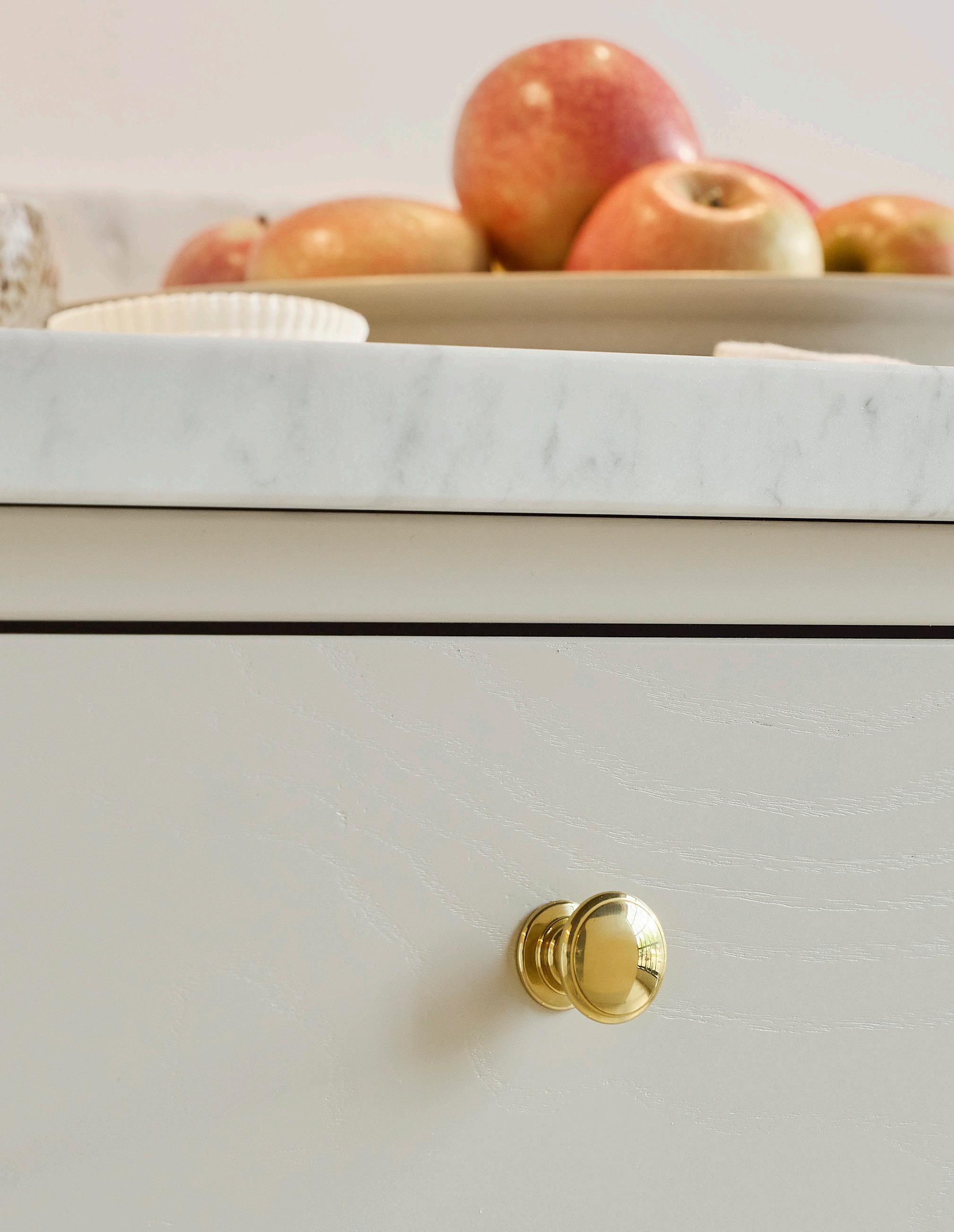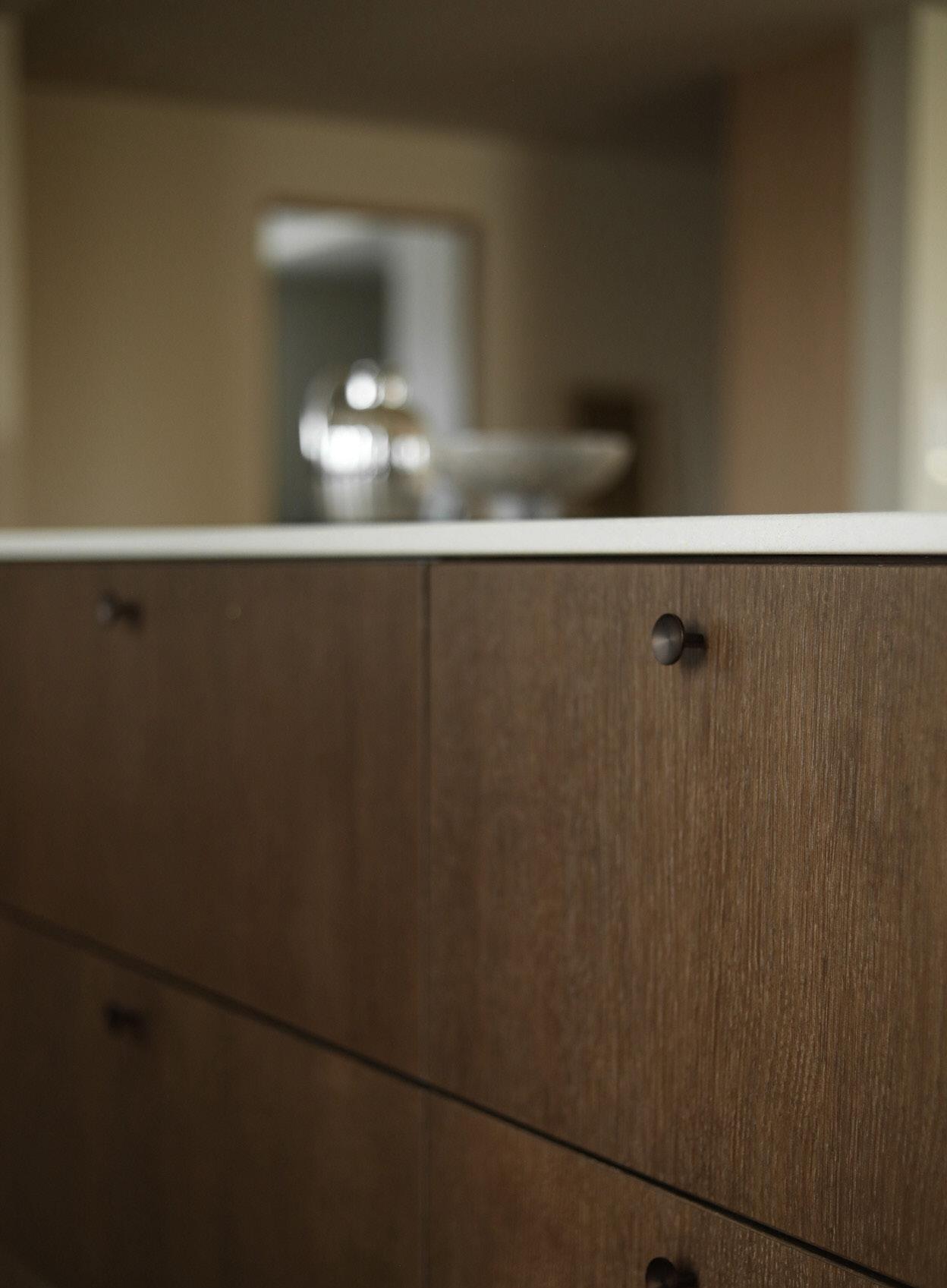 Detaljerna får ta plats. Knopparna Uno och 24466 i mässing förstärker helhetskänslan – med sitt formspråk förenar de funktion och estetik. De knyter samman det klassiska med det samtida och sätter den där sista, avgörande touchen på köket. Ett rum där varje detalj är genomtänkt.