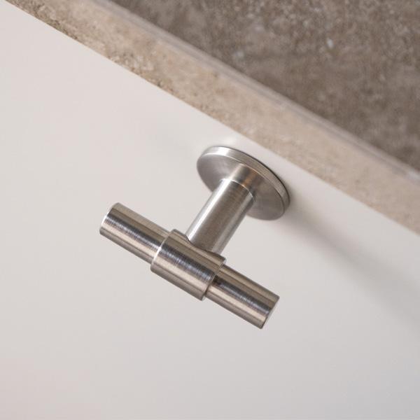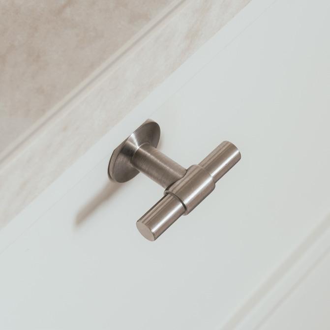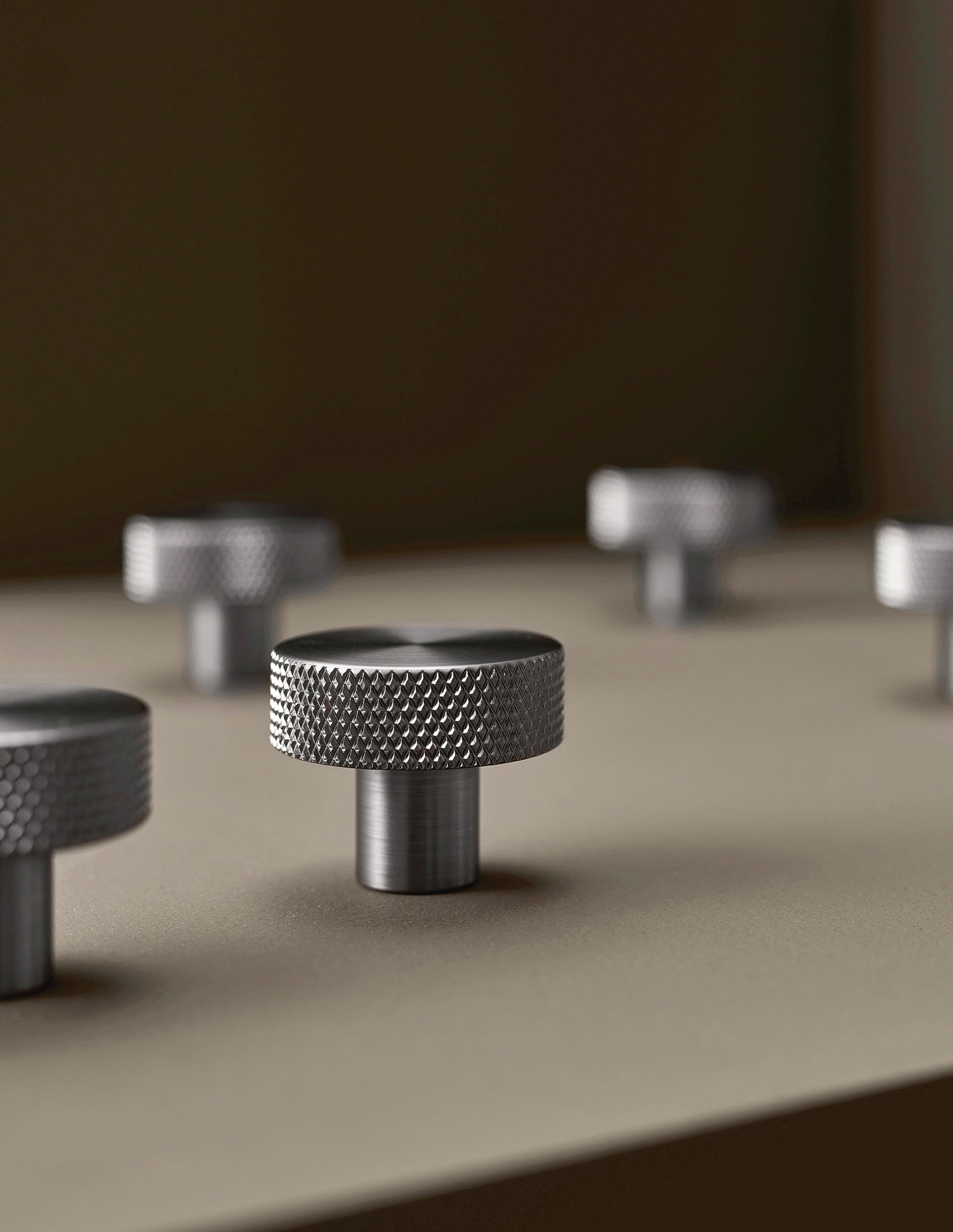 Vibe-seriens handtag och knoppar kännetecknas av sin solida tyngd, vilket ger en tydlig upplevelse av kvalitet och hållbarhet. Varje detalj är noggrant utformad för att förena funktion med estetik – en serie för den som vill addera karaktär till rummet med design som håller över tid. Handtagen finns i flera längder och utföranden som passar både lådor och skåp. Knopparna erbjuds i två stilrena varianter: den klassiskt runda och den moderna T-formade – båda skapade för att lyfta helheten.