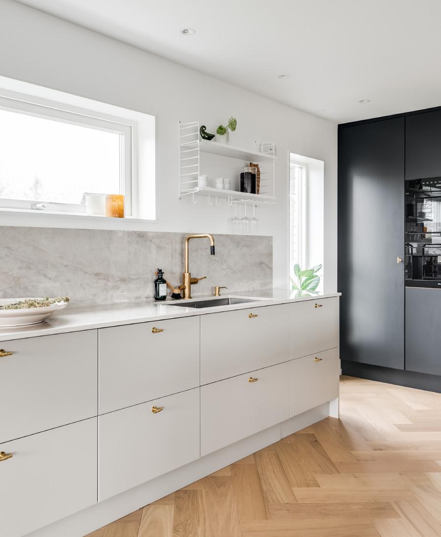 Stilen är sparsmakad men personlig, och låter materialen och detaljerna tala. Med rätt beslag – som våra knoppar Uno eller 24466 – förvandlas det till ett kök med både karaktär och själ.