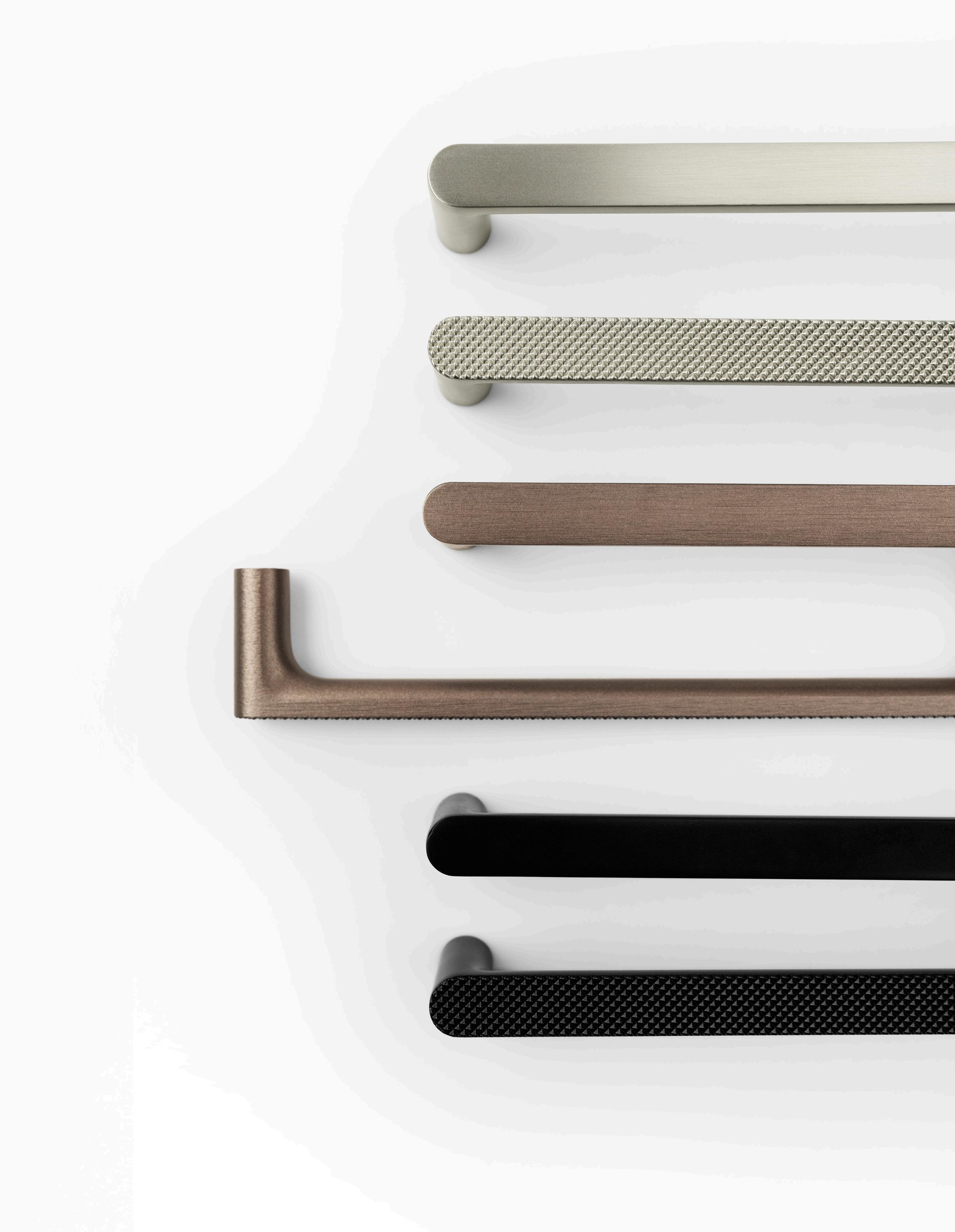 Med både släta och lättrade ytor kan du enkelt skapa en röd tråd genom att matcha handtag, knoppar, dörrhandtag och krokar. Kollektionen finns i tre tidlösa finishar: mattsvart, rostfri look och mörk brons — noggrant utvalda för att förhöja känslan i varje rum.