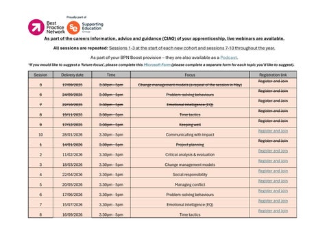 Classroom topics, dates, times and joining links - leaders