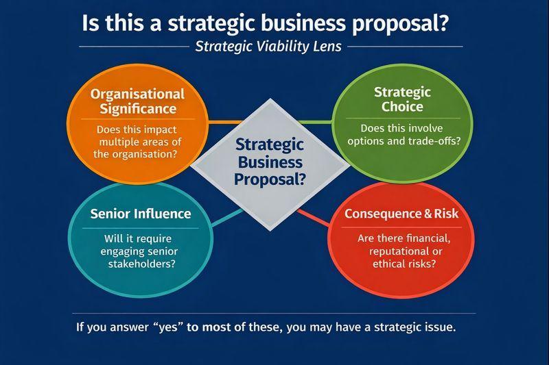 To clarify the purpose, scope and expectations of a strategic business proposal at senior leader level and to begin shaping an appropriate proposal grounded in your organisational context and strategic priorities. Objectives
