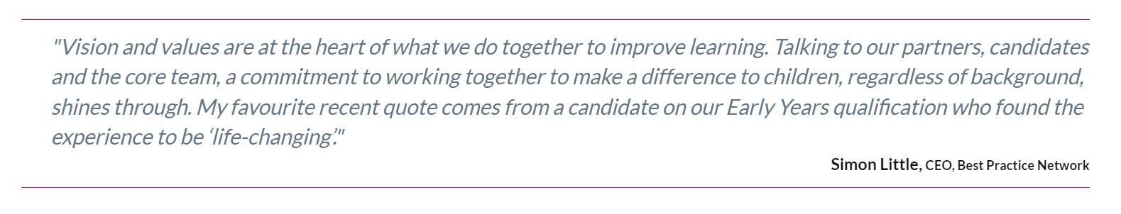We aim to change lives for the better by inspiring and developing colleagues working in education. As a team and a network, we inspire each other to grow personally and professionally.