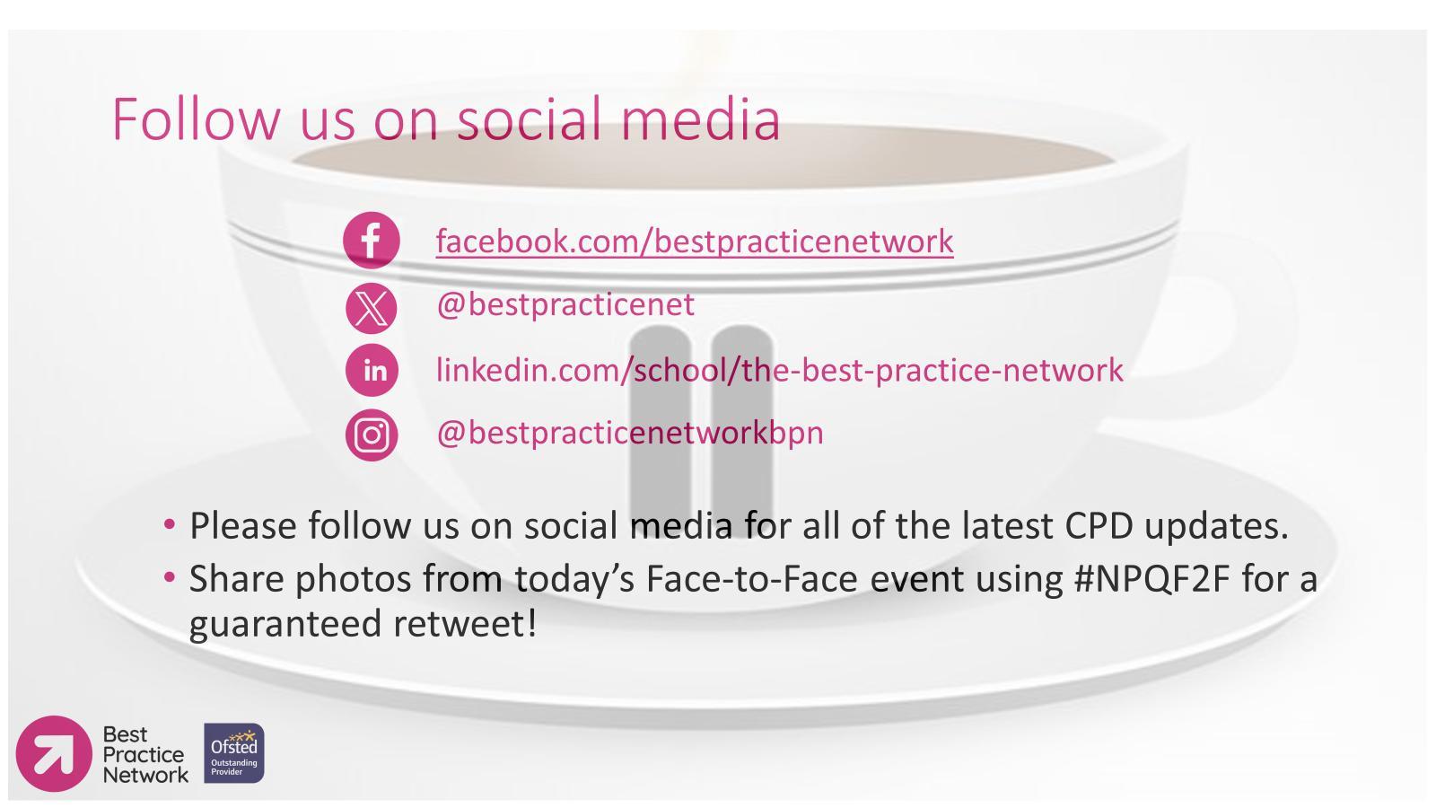 Contact the CPD team for NPQ delivery organisation details via: npq@bestpracticenet.co.uk