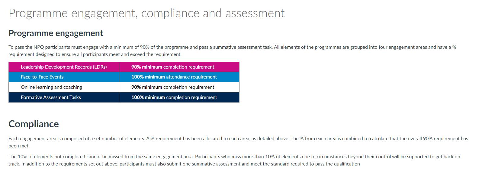 ▪ engage with at least 90% of the programme’s elements