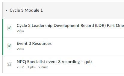 Using your blank Cycle Three LDR as a prompt to focus your individual thinking, begin to plan your learning pathway for Cycle Three: