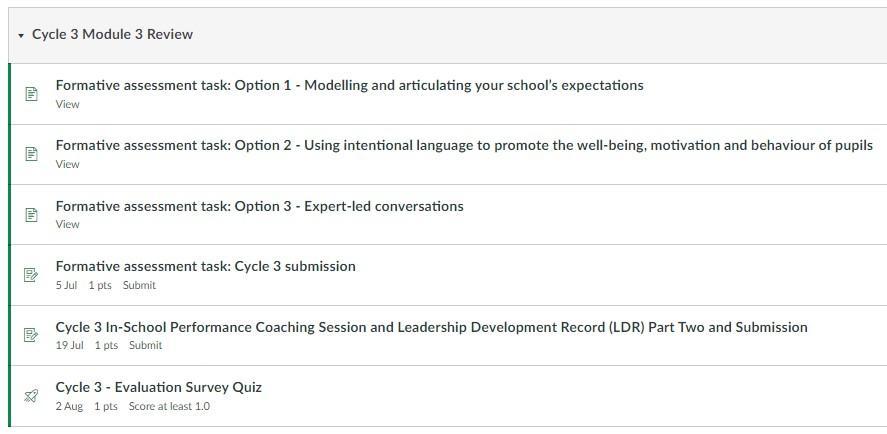 • To identify learning pathway for remainder of Cycle Three to address areas for development (ahead of impact review and summative assessment task)