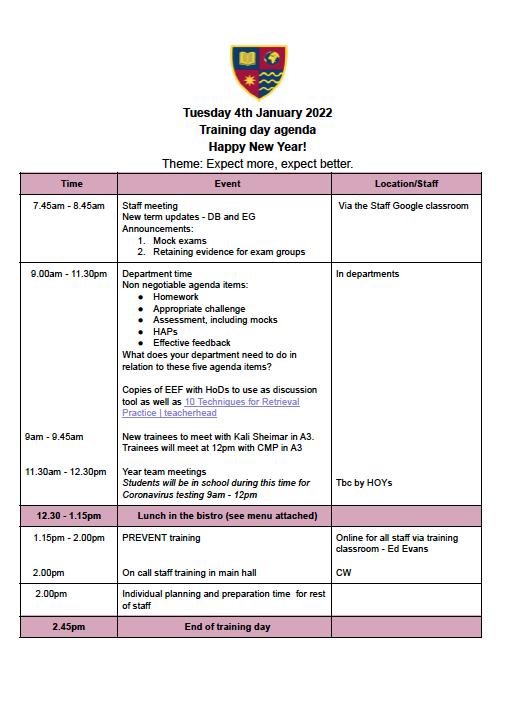 3. Bring your own setting’s Teacher Development Policy (title and approach will vary at each setting/MAT) or similar documentation.