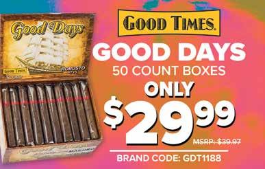 BestCigarPrices® 2022, a registered trademark of New Global Marketing, Inc. Printed in U.S.A. BestCigarPrices® does not sell cigars or tobacco products to anyone under the age of 21, nor do we sell cigarettes. Most offers and prices in this catalog are valid until 4/28/23, and are subject to change without notice. † Bonus and add-on items are available while supplies last, and in certain cases may be substituted at BestCigarPrices® discretion. Free shipping does not apply to overweight items (such as humidors), previous orders, backorders, or orders shipping outside the continental U.S. Some shipping restrictions may apply. Offers cannot be combined unless otherwise specified. Promotions that require a minimum spend are based on subtotal. BestCigarPrices ® is not responsible for any typographical errors.