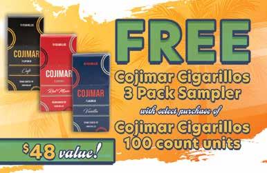Most offers and prices in this catalog are valid until 7/27/23, and are subject to change without notice. BestCigarPrices® 2023, a registered trademark of New Global Marketing, Inc. Printed in U.S.A. BestCigarPrices ® does not sell cigars or tobacco products to anyone under the age of 21, nor do we sell cigarettes. † Bonus and add-on items are available while supplies last, and in certain cases may be substituted at BestCigarPrices® discretion. Free shipping does not apply to overweight items (such as humidors), previous orders, backorders, or orders shipping outside the continental U.S. Some shipping restrictions may apply. Offers cannot be combined unless otherwise specified. Promotions that require a minimum spend are based on subtotal. BestCigarPrices ® is not responsible for any typographical errors.