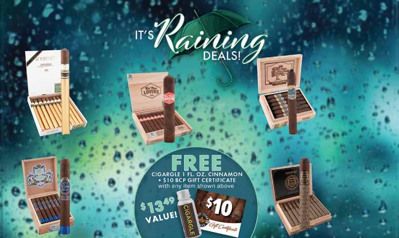 ITEM #: 251527 WITH SELECT CUBAN ROUNDS & CUBAN REJECTS BUNDLE PURCHASE.† CIGARGLE 1 FL. OZ. - SPEARMINT $3.49 VALUE! $4399 1 Bundle (25 Cigars) Starting at: $8399 2x Deal (50 Cigars) Starting at: Bundles Available In: 5 x 54* • 6 x 52 • 6 x 60 • 7 x 50 Brand Code: FCT1727 $3299 1 Bundle (20 Cigars) Starting at: $5999 2x Deal (40 Cigars) Starting at: Bundles of 20 Available In: 5 x 50* • 6 x 60 6 x 52 • 7 x 48 Brand Code: CUB1028 $3299 1 Bundle (20 Cigars) Starting at: $5899 2x Deal (40 Cigars) Starting at: Bundles of 20 Available In: 5 x 50* • 6 x 50 • 7 x 48 Brand Code: REJ1050 $4299 1 Bundle (20 Cigars) Starting at: $7699 2x Deal (40 Cigars) Starting at: Brand Code: TDO190 Bundles of 20 Available In: 5 x 50 • 6 x 50 6⅛ x 52 • 7 x 48 WITH SELECT ROCKY PATEL TOP SHELF SECONDSPURCHASE .† ITEM #: 238292 ROCKY PATEL ASHTRAY WHITE & RED FREE BONUS WITH SELECT ALEC BRADLEY TOP SHELF SECONDS ITEM #: 251433 SINGLE JET FLAME LIGHTER FREE BONUS WITH SELECT TORO DE ORO PURCHASE .† ITEM #: 241949 DOUBLE BLADE 60 RING GAUGE CIGAR CUTTER FREE BONUS $3.79 VALUE! WITH SELECT GRAN HABANO TOP SHELF SECONDS ITEM #: 241949 DOUBLE BLADE 60 RING GAUGE CIGAR CUTTER FREE BONUS $3.79 VALUE! + ADD-ON DEAL BCP SMOKE ODOR ELIMINATOR CANDLE SWEET ORANGE & SPICY CHILI PEPPER $500ONLY ITEM #: 249617 WITH SELECT SLAUGHTERHOUSE PURCHASE.† $22.00 VALUE! $3999 1 Bundle (20 Cigars) Starting at: $77 99 2x Deal 40 Cigars) Starting at: Bundles of 15 Available In: 6 x 50* • 6 x 52 • 6 x 54 • 6 x 60 Brand Code: GRH1323 $2499 1 Bundle (10 Cigars) Starting at: $4999 2x Deal (20 Cigars) Starting at: Brand Code: SLH1363 Bundles of 10 Available In: 5 x 50 6 x 50 7 x 48 $5499 1 Bundle (20 Cigars) Starting at: $9899 2x Deal (40 Cigars) Starting at: Bundles of 20 Available In: 5 x 50 • 6 x 52 • 7 x 48 Brand Code: RPS2416 $57 99 1 Bundle (20 Cigars) Starting at: Brand Code: ALE649 $10999 2x Deal (40 Cigars) Starting at: Bundles of 20 Available In: 5 x 52 • 6 x 54 FREE BONUS $9.99 VALUE! 44 Pro Tip: Select “2X DEAL” on your favorite cigars and you’ll get double the cigars with an instant discount or BCP gift certificate good towards your next purchase! Note: Selecting 2X DEAL voids other discounts and promotions. Bundles