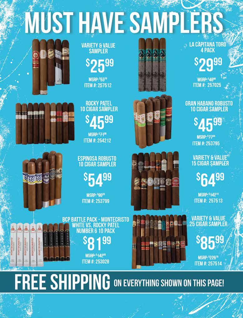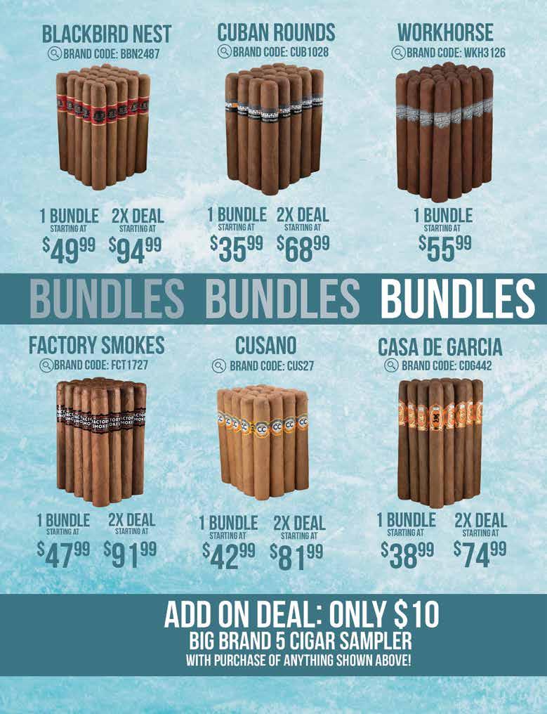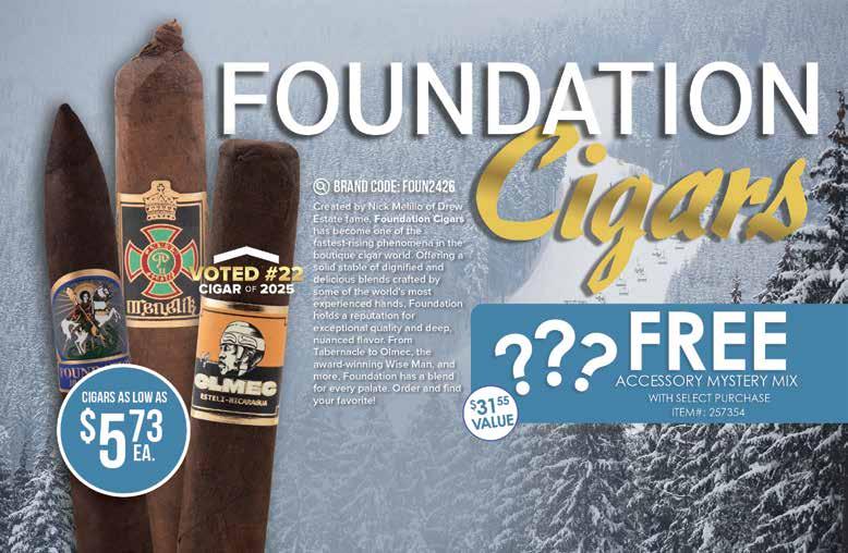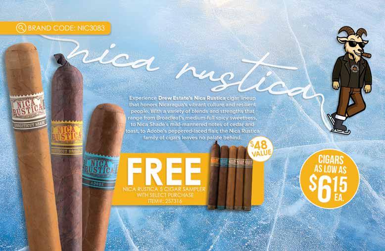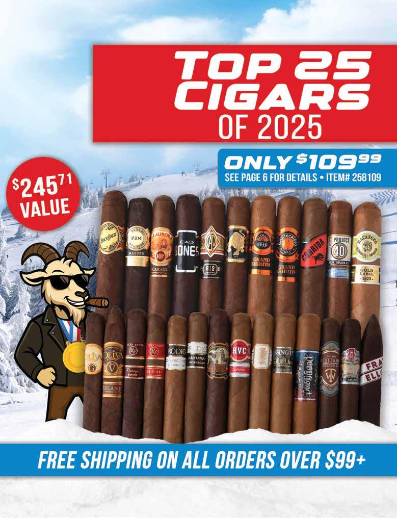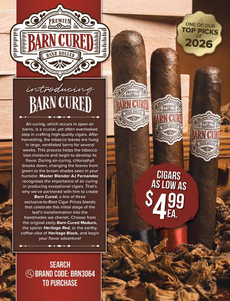 Most offers and prices in this catalog are valid until 2/27/26, and are subject to change without notice. BestCigarPrices ® 2026, a registered trademark of New Global Marketing, Inc. All registered marks are the property of their respective owners. Printed in the USA. BestCigarPrices ® does not sell cigars or tobacco products to anyone under the age of 21, nor do we sell cigarettes. † Bonus and add-on items are available while supplies last, and in certain cases may be substituted at BestCigarPrices ® discretion. Some delivery options are not available for certain areas or products. See options in checkout. Transit time may be impacted on holidays, weekends, or during events of inclement weather. Free shipping does not apply to overweight items (such as humidors), previous orders, backorders, or orders shipping outside the continental U.S. Some shipping restrictions may apply. Offers cannot be combined unless otherwise specified. Promotions that require a minimum spend are based on subtotal. Orders placed after 2PM ET ships next business day. BestCigarPrices ® is not responsible for any typographical errors.