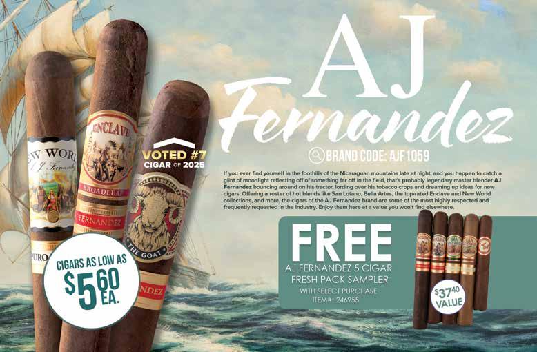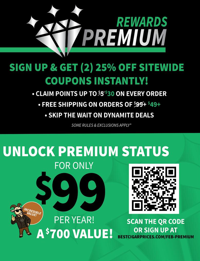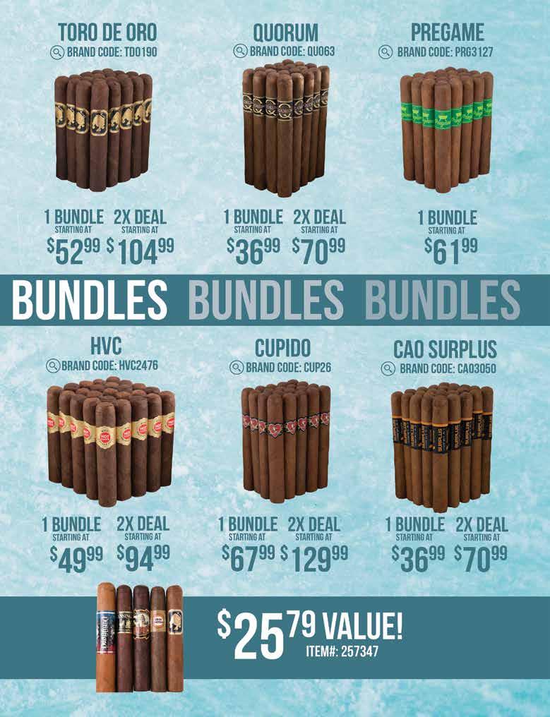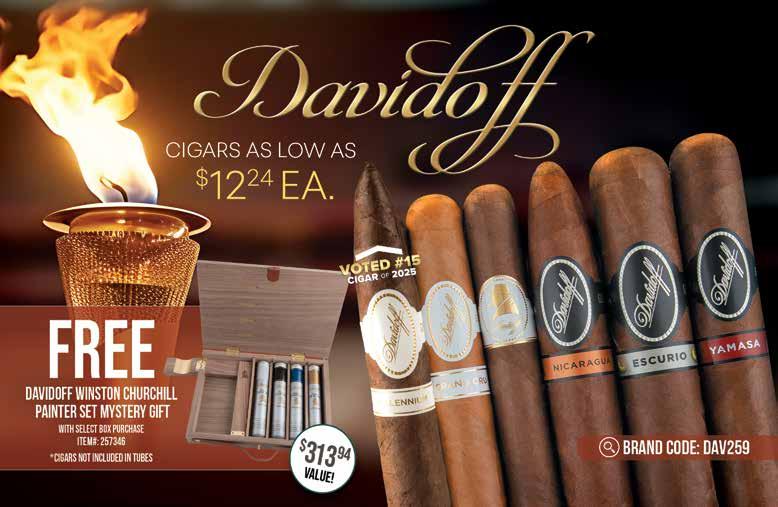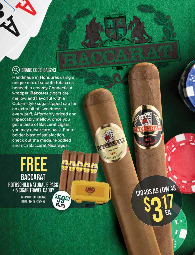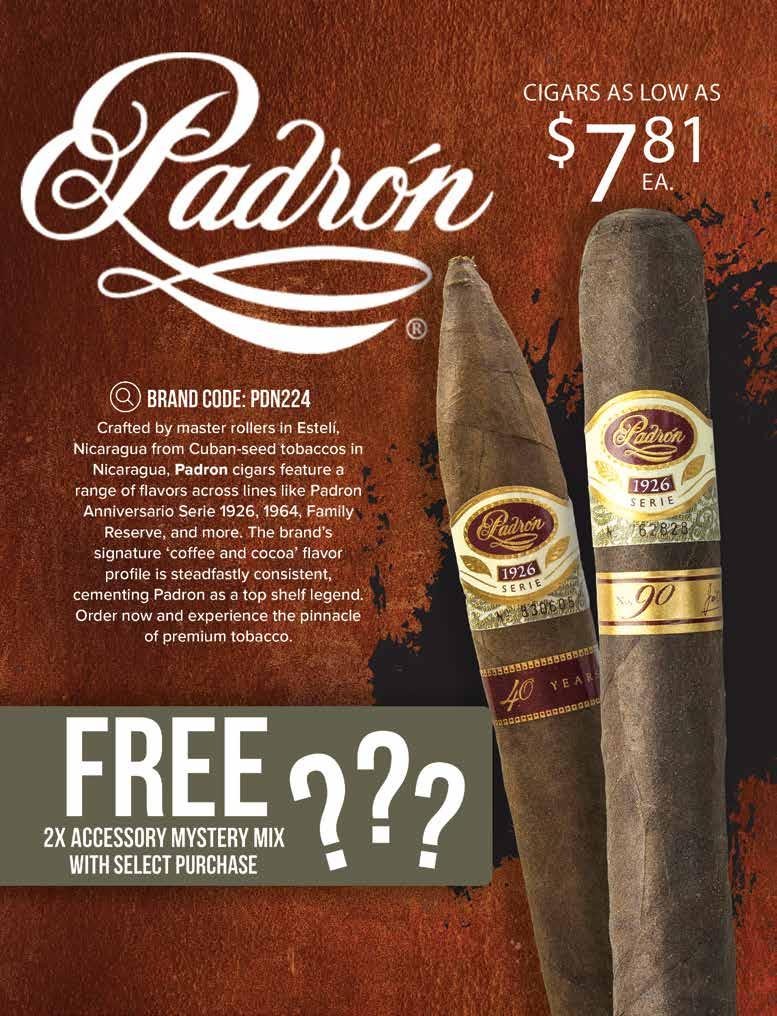 Most offers and prices in this catalog are valid until 2/27/26, and are subject to change without notice. BestCigarPrices ® 2026, a registered trademark of New Global Marketing, Inc. All registered marks are the property of their respective owners. Printed in the USA. BestCigarPrices ® does not sell cigars or tobacco products to anyone under the age of 21, nor do we sell cigarettes. † Bonus and add-on items are available while supplies last, and in certain cases may be substituted at BestCigarPrices ® discretion. Some delivery options are not available for certain areas or products. See options in checkout. Transit time may be impacted on holidays, weekends, or during events of inclement weather. Free shipping does not apply to overweight items (such as humidors), previous orders, backorders, or orders shipping outside the continental U.S. Some shipping restrictions may apply. Offers cannot be combined unless otherwise specified. Promotions that require a minimum spend are based on subtotal. Orders placed after 2PM ET ships next business day. BestCigarPrices ® is not responsible for any typographical errors.