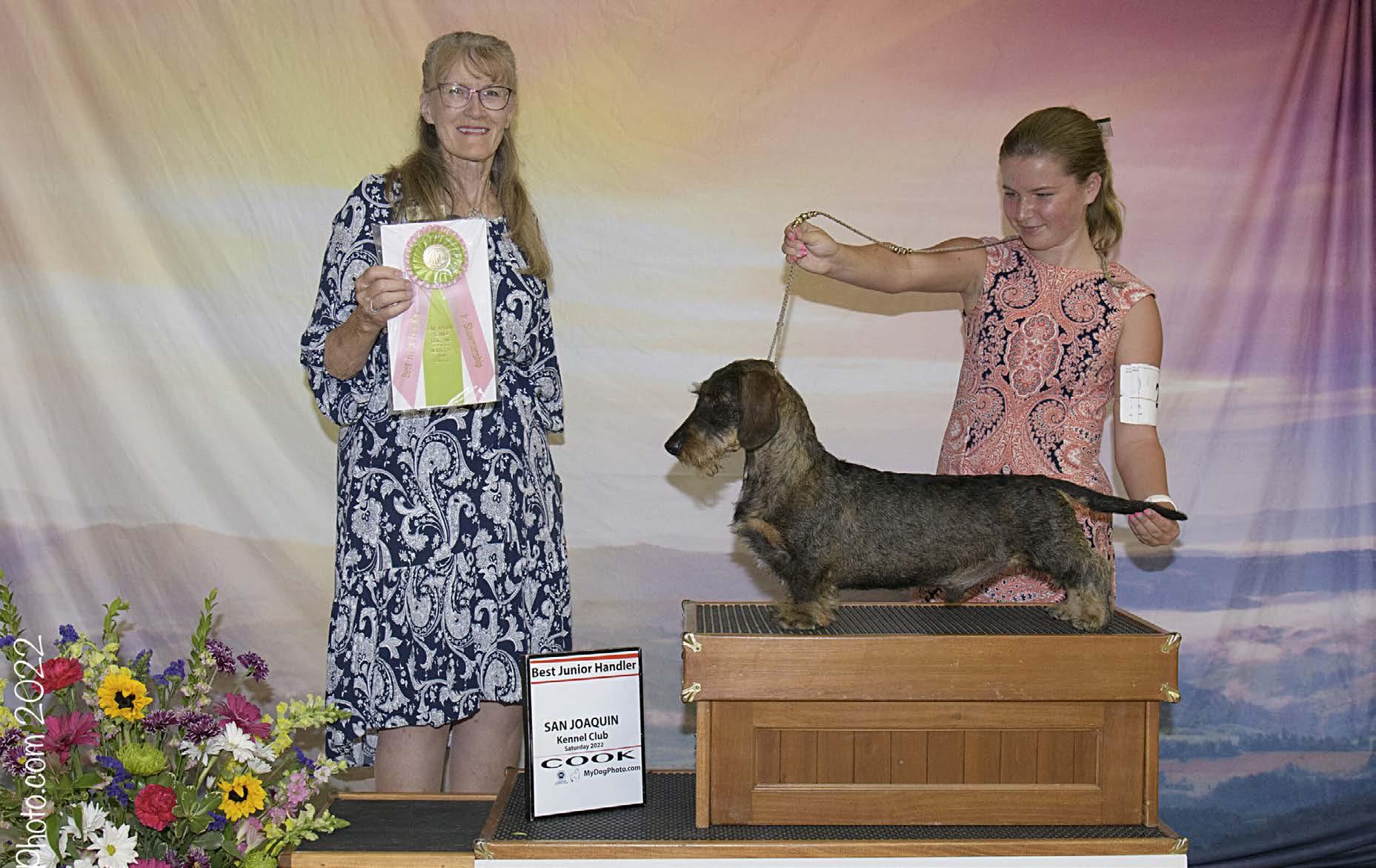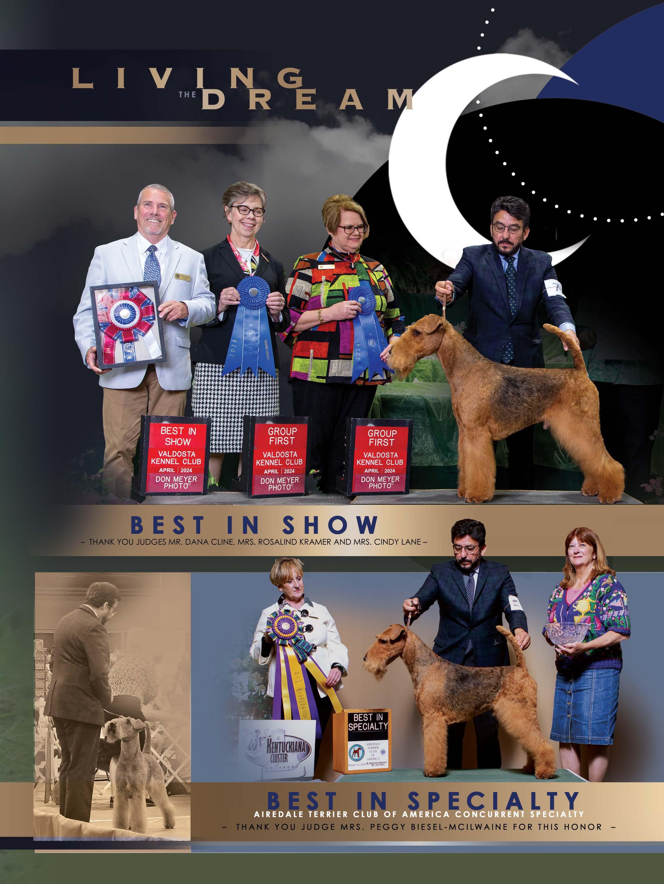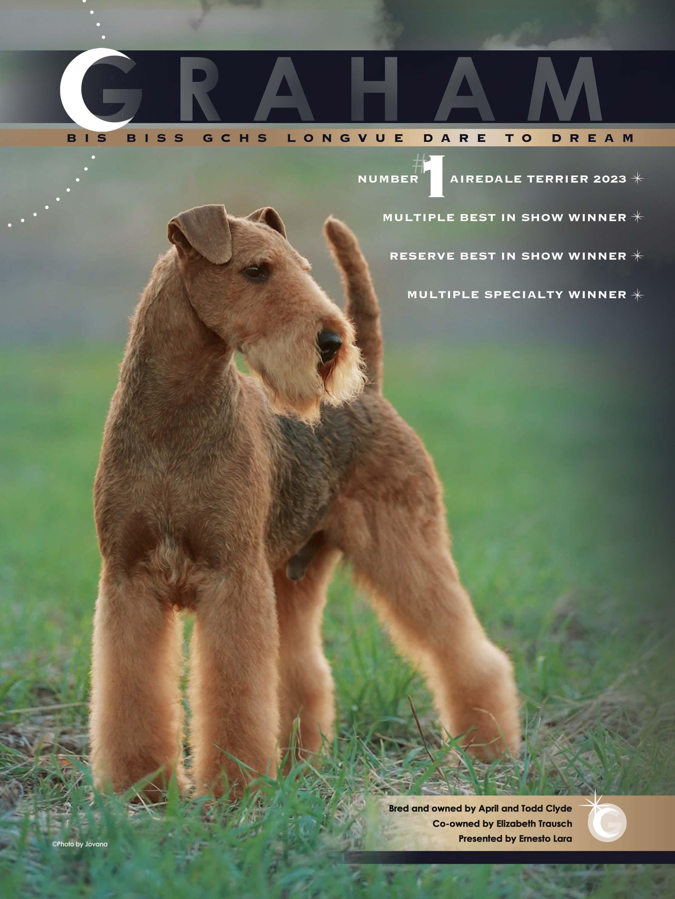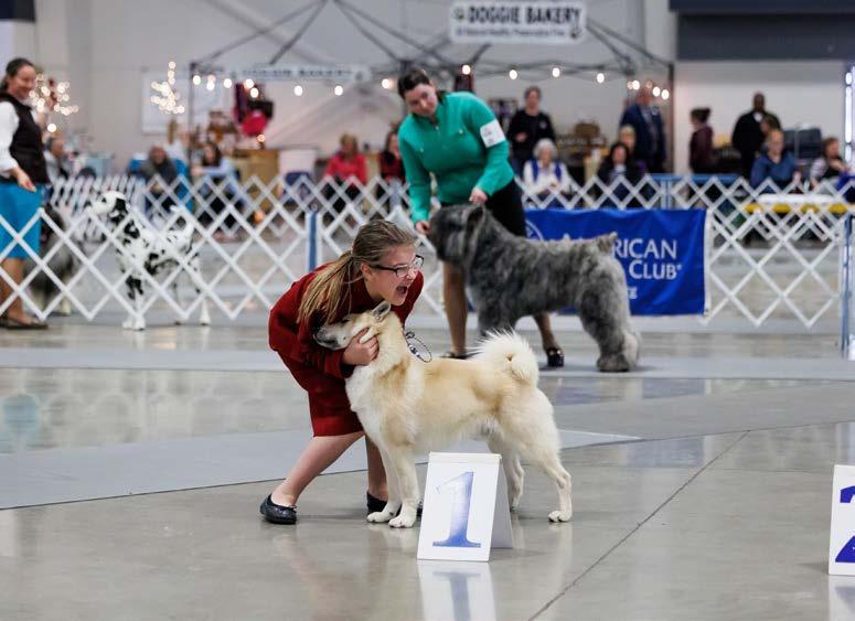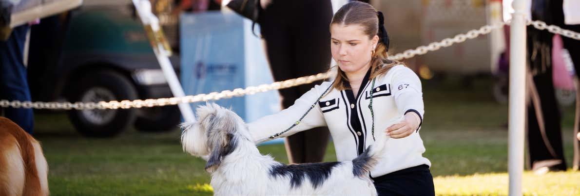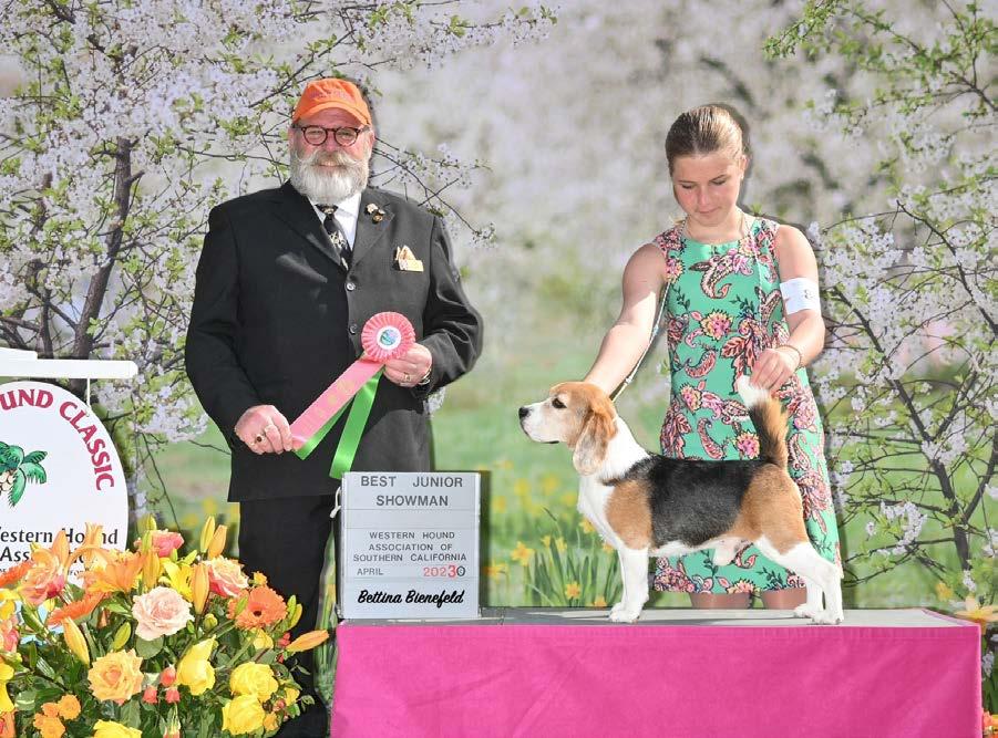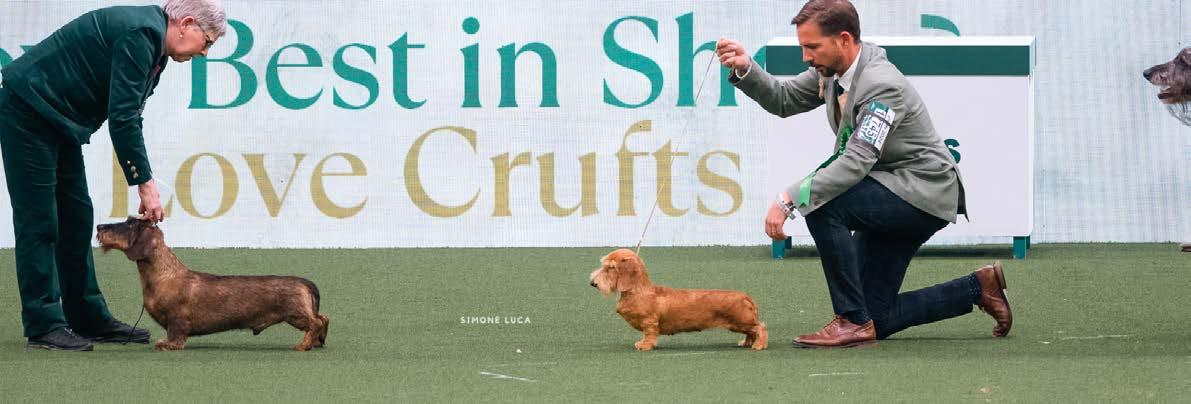 While I’ve had the opportunity to show numerous dogs in breed competition, I’d consider my greatest achievementstobewithmyIrishWolfhound,Winn,and my Wirehaired Dachshund, Garrus. I guided Winn as a puppytothreeconsecutivemajorwinsoverasignificant specialty weekend, securing his championship—a challenging feat considering I was just twelve years old, handlingadogoutweighingmebyonehundredpounds! Garrus, my Wirehaired Dachshund, has brought me the most success in the breed ring, earning several group placements, including a memorable Group Second under Dachshund authority, Mr. David Peat.