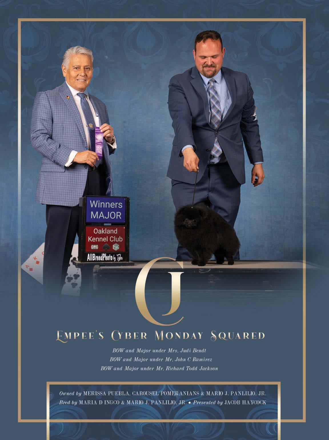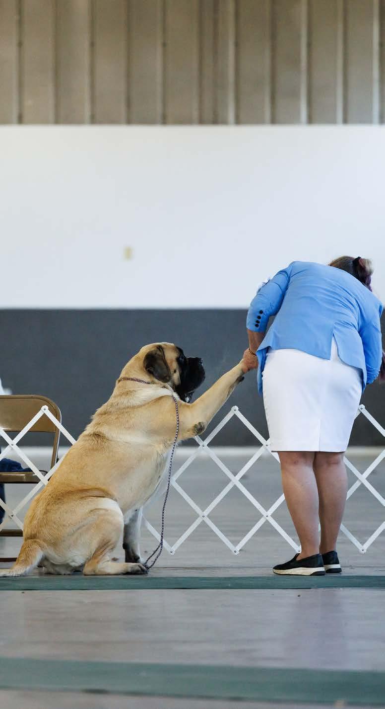 The entire experience has been amazing. It’s incredibly rewarding to embark on a journey as a complete beginnerandlearnsomethingneweverytimeIstepinto the ring. One of the most memorable moments was my first show last June in Merlin, Oregon. We were driving fromSouthernCaliforniatoourpropertyinWashington to oversee our home construction. I asked Gabriel if it would be okay if I tried showing my dog at a show along the way. He replied, “Absolutely! You’ll be fine! Just call if you have questions or need anything... and keep me posted.” However, there was no cell reception at the show, so I couldn’t communicate with Gabriel at all. I just did my best to figure it out. We had a blast, made many new friends, and at the end of the three shows, we reported back to Gabriel and Ivonne that we went G1,G2,andG2intheregulargroups,aswellassweeping the NOHS Groups, along with a BIS and a RBIS.
