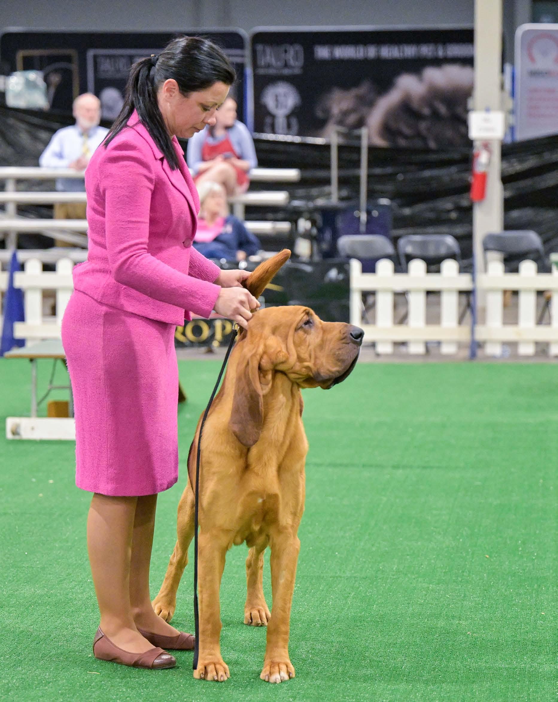 My mother bred and showed Norwegian Elkhounds. Consequently, I grew up immersed in the world of showing, particularly within the breed of elkhounds. Additionally, I participated in junior shows, where I showcased a bloodhound. What handlers inspired you in the beginning, and under whom did you apprentice?