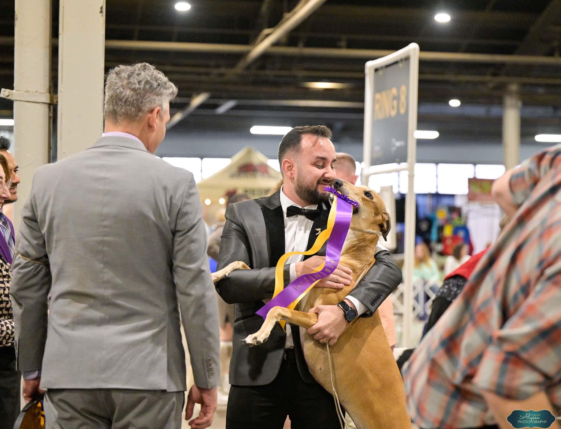 I am a fourth-generation breeder, owner, and handler who has been attending dog shows since a young age. My great-grandmother, Janet Souza, became involved in shows with her American Staffordshire Terriers in 1968. Simultaneously, my grandmother, Linda Souza, discovered her passion for dog shows through Old English Sheepdogs. In 1971, Janet and Linda purchased their first Irish Wolfhound, Ch. Roaree of Limerick, and began breeding under the Limerick prefix. Limerick Irish Wolfhounds have enjoyed great success in the ring, earning prestigious awards such as Best in Show at Santa Barbara, AKC Hound Group Breeders of the Year, and winning the National Specialty. My mother, Jamie, was quickly drawn to shows and continued the family dynasty by breeding Irish Wolfhounds, Whippets, Salukis, and Afghan Hounds. When I came along, it was inevitable that I would follow in their footsteps. My fondest childhood memories are sitting ringside at California shows, watching my mother and grandmother handle Wolfhounds, and soon enough, I began doing the same.