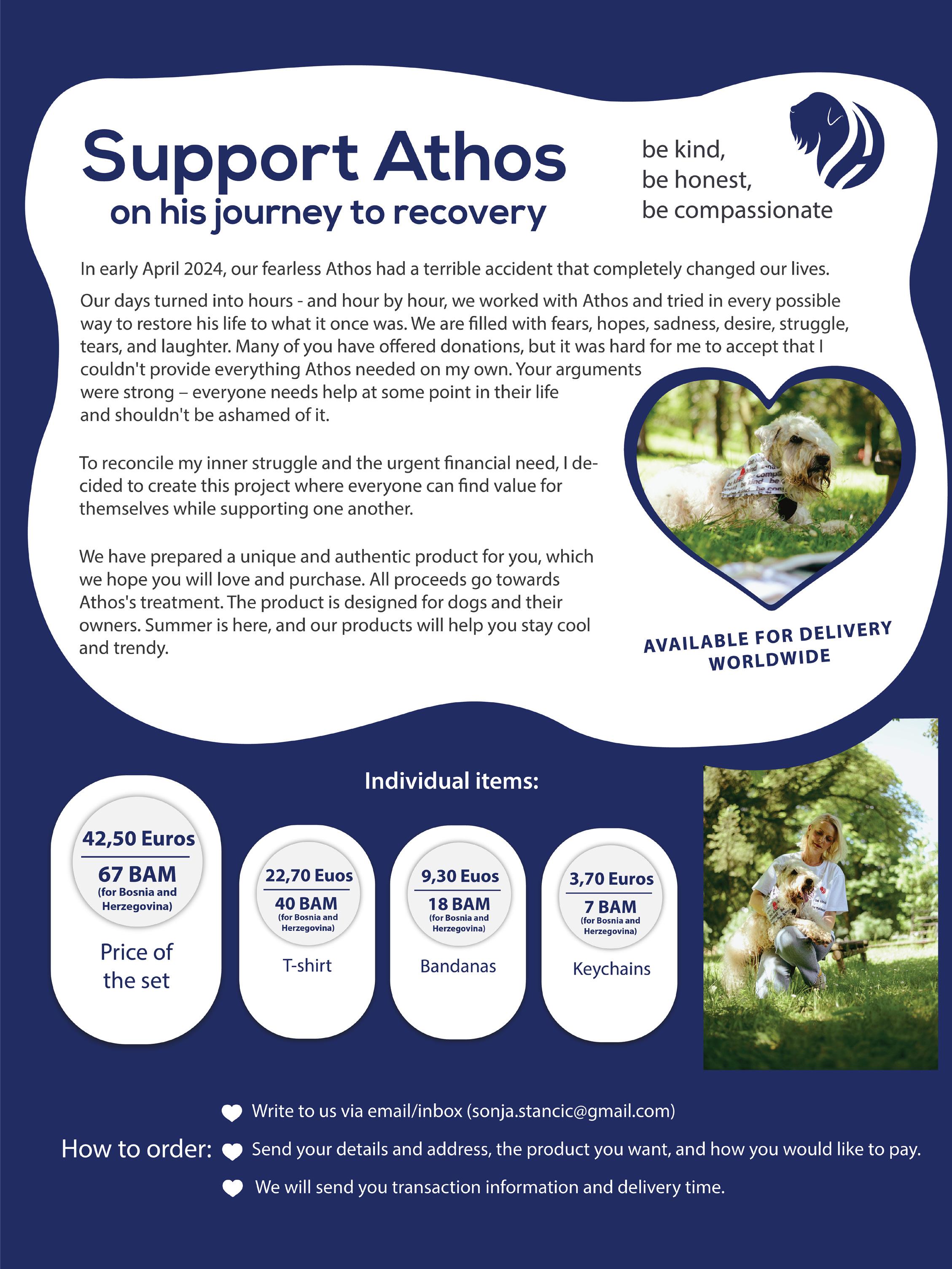 In this situation, I realized that I needed to find a way to combine my love for dogs with practical needs. This is how the project “Be Kind - Be Honest - Be Compassionate” was born—out of a desire to create something that would help us, as well as others who love and care for their pets. Through this project, I aim to connect people who share the same passion and who understand the importance of support, both emotional and practical, during the most difficult times.