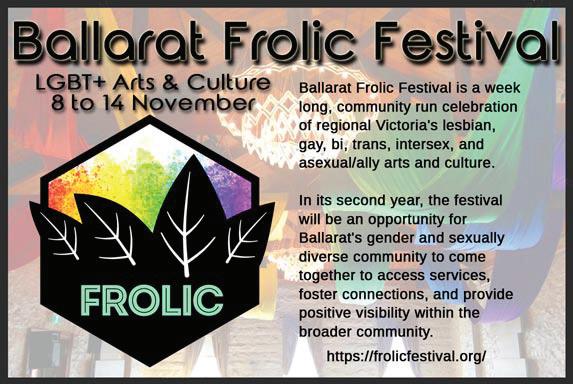 A week long celebration of regional Victoria's LGBT+ arts and culture. An inclusive event that the whole community is welcome to attend. frolicfestival.org