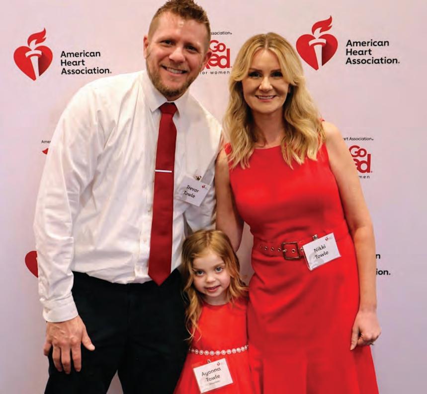 From right: Jack Towle proudly displaying his Heart Hero cape at an event. Trevor, Nikki and Ayonna (Heart Hero) Towle at the 2025 Go Red for Women Luncheon, at which the female cardiac survivors were recognized. Kathryn adds, “We are so fortunate to have the support of Dr. Drucker and the pediatric cardiology department at UVMMC. We love adding new families!”