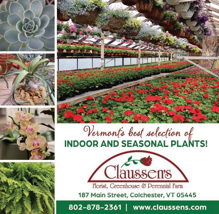 Shop Claussen’s for color all season long! Energy, a commitment to excellence, and forging lasting relationships with its customers is what Claussen’s Florist, Greenhouse, and Perennial Farm in Colchester, VT, is all about. Founded in 1972 by William “Bill” Claussen, the business is an all-year-round destination for everything garden-related, including annuals, perennials, edibles, cut owers, garden and home décor, and more. www.claussens.com
