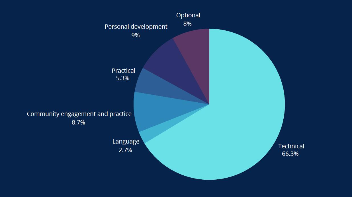 ● Electives: Marketing yourself and your company (10%), technical courses (20%), and projects with ethical backgrounds (70%).