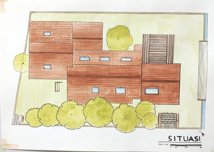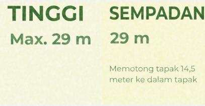 Massa box dasar lebih kecil dari batas tapak untuk memberikan lighting, ventilasi, dan ruang hijau