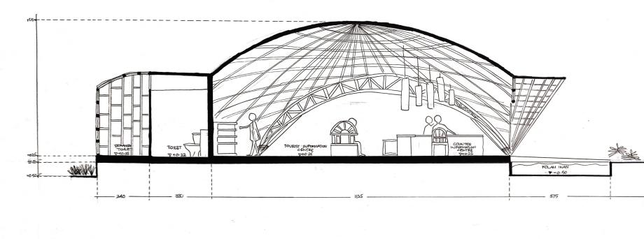 Atap melengkung d e n g a n k e t i n g g i a n berbeda untuk m e m a s u k k a n cahaya TAMPAK POTONGAN