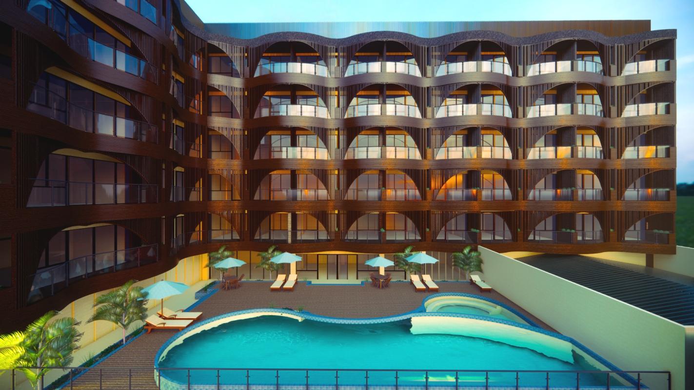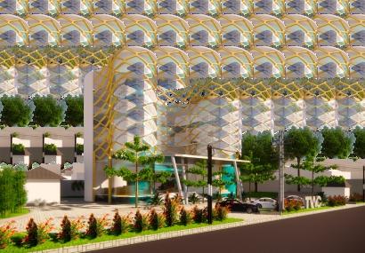 Tower hotel dinaikkan pada untuk memaksimalkan ruang. Bangunan dibuat berlubangdariarahYIAuntukmemberikan signagearsitekturaldariarahYIA