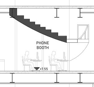 Ruang di bawah tangg digunakan sebagai ruang untuk meeting online secara personal mengingat setelah pandemi, meeting dengan klien sering dilakukan secara online